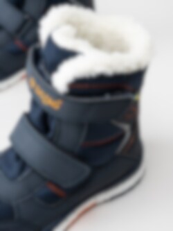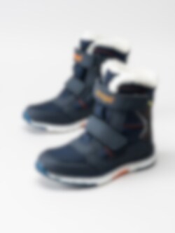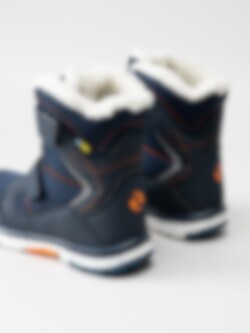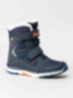 Mörkblå vinterkängor Ginden i textil och syntet från ZigZag. Fleecefodrade kängor med löstagbar innersula med orange detaljer. Skorna har ett membran som gör dem vattentäta.