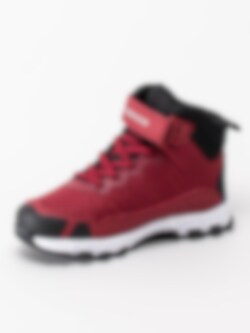 Röda sportiga kängor Astro från Bagheera. Kängan har ett mellanhögt skaft med en vadderad kant och plös för bästa komfort. Elastiska skosnören och ett reglerbart kardborreband för bättre passform. Förstärkta partier runt hel skon för att tåla mer aktiv lek. HydroGuard®-membran som gör skon helt vattentät samtidigt som den andas. Urtagbar innersula om du vill ha dina egna sulor. Räfflad yttersula i gummi för bästa grepp mot underlaget. Perfekt fritidskänga för unga aktiva barn.