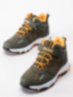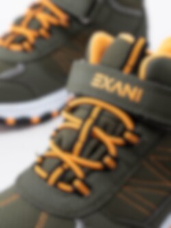 Exani Sports AB - Wooden Jr - Mörkgröna sportskor med orange detaljer