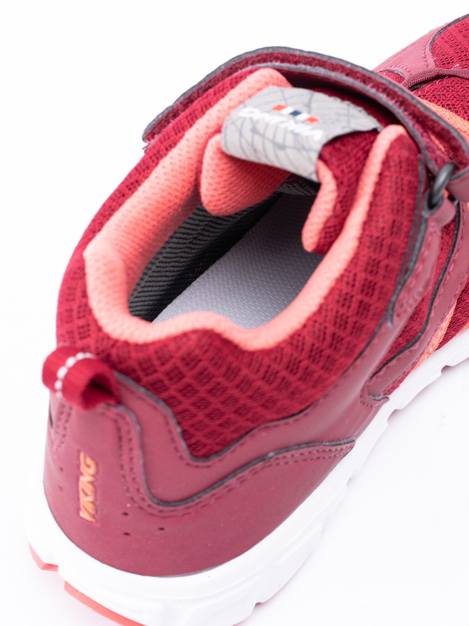 Känga Alvdal Mid R från Viking är en mörkröd sneaker i meshtyg med syntetpartier. Utrustad med Gore-Tex som gör skon vattentät samt andas. Korallfärgad resårsnörning med 3 hål för att hålla foten på plats. En justerbar rem med kardborre som öppning. Hälla på bakskaft som hjälpmedel vid påtagning. Sömlös logga på utsidan av tå, bakparti och utsidan av bakparti. Sydd logga på plös. Grått foder och vit, löstagbar innersula i textil. Vit yttersula i syntet med röda partier.