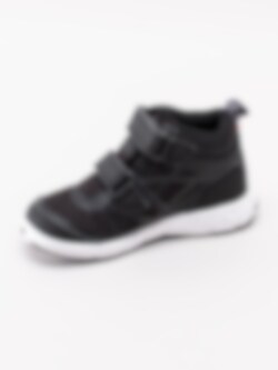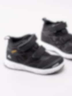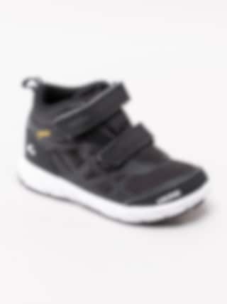 Svarta kängor Veme Vel Mid från Viking tillverkade i meshtyg med partier i syntet. Utrustad med Gore-Tex membran som gör skon vattentät samtidigt som den andas. De är tvättbara i maskin i max 30 grader, perfekt för att få skon som ny igen. Präglad logga på utsidan och på kardborrebandet. Två justerbara kardborreband som öppning. Hälla i nylon på bakskaft som hjälpmedel vid påtagning. Mörkgrått foder och löstagbar innersula i textil. Vit yttersula med mönster och partier i svart. Konturerad logga i hälen.