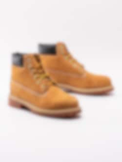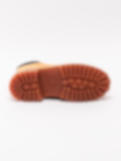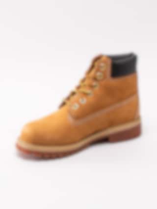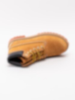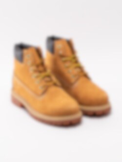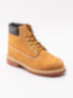 Gula klassiska kängor 6 Inch Premium för barn från Timberland tillverkade i nubuck med mörkbrun skaftmudd i syntet. De klassiska snörkängorna från Timberland i en modell för kidsen. Materialet är behandlat och har tejpade sömmar som gör kängorna vattentäta. Fodrade med ett Primaloft-foder för isolerar och värmer. Spraya dessa med en vattenbaserad impregnering för att inte syntetmaterialet ska reagera så det blir starkt vattenavvisande.