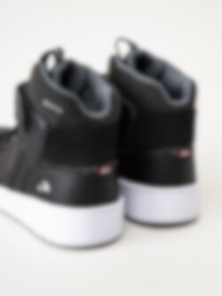 Svarta kängor VFX Mid GTX från Viking i textil och syntet. Passar perfekt för aktiva och lekfulla barn. Utrustad med Gore-Tex membran som gör skon vattentät samtidigt som den andas. Justerbart kardborreband som öppning och svart snörning i resår för att hålla foten på plats. Innerfoder i grått och löstagbar innersula i textil. Vit mellansula med vit yttersula i syntet för att få ett bra grepp mot underlaget. Ett måste för höstens alla lekar!