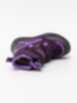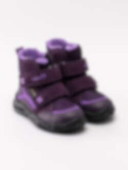 Lila vinterkängor Glacier från Superfit tillverkade i mocka med partier i nylon. Förstärkt tå- och bakparti i syntet. Första-gå vinterskor för dem små barnen utrustade med Gore-Tex membran som gör vinterskorna vattentäta samtidigt som de andas. Supervarma med sitt teddyfoder med möjlighet att byta i innersulan som är löstagbar. Direktgjuten yttersula i syntet som inte kommer att släppa yttermaterialet.