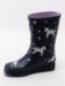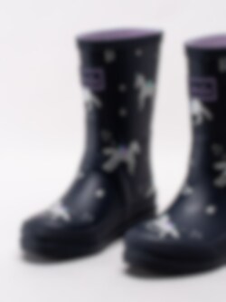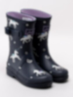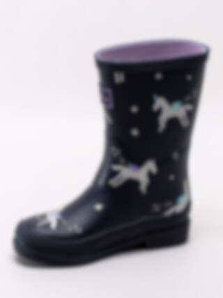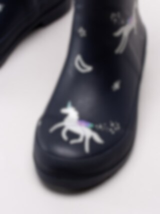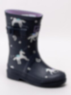 Joules - Junior Welly Print - Mörkblå gummistövlar med enhörningar