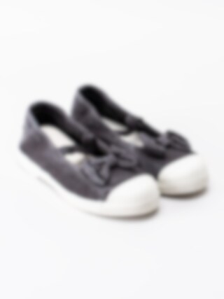 Mörkgrå ballerinaskor Old Palomar från Natural World med gummitå tillverkade i 100% organisk bomull och 100% ekologiska material kombinerade med stil och hållbarhet. Tvättbara i maskin på 30 grader. Dekortiv rosett på ovandel vid framparti. Resårrem över fot för att hålla skon på foten. Mörkgrått foder och löstagbar vit innersula i textil med sömlös logga i hälen. Sydd tygbit med logga på bakparti. Vit yttersula i naturligt gummi med mönster.