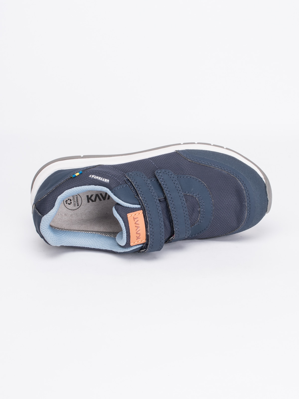 Fritidssko Halland från Kavat i meshtyg. Utrustad med ett vattentätt membran som även andas. Två remmar med kardborre som öppning i syntet. Läderbit med logga sydd på plös och en liten flagga på utsidan som detalj. Förstärkt tå. Grått foder och löstagbar innersula i textil med sömlös logga. Vit mellansula med grå yttersula i gummi med sicksack mönster och logga.