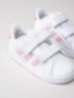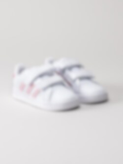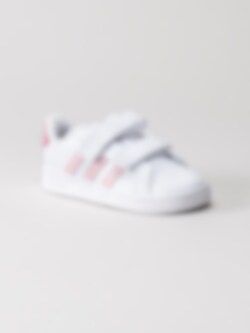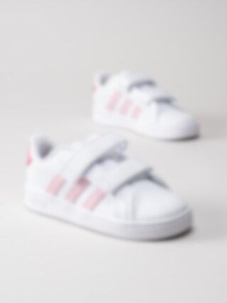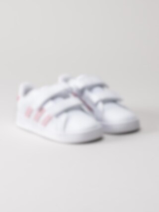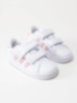 Adidas - Grand Court CF I - Vita sneakers med rosa stripes