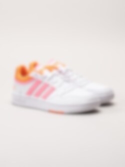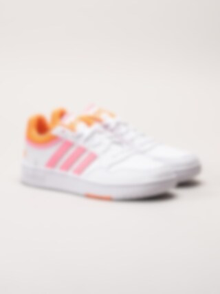 Adidas - Hoops 3.0 K - Vita sneakers med neonrosa stripes