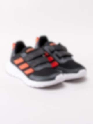 Svarta sportskor Tensor Run för barn från Adidas i stickad mesh och sydda partier i syntet. Lätta skor för lek hela dagen! Svetsade röda 3-stripes på in- och utsidan som detalj. Kardborreknäppning med två band för enkel påtagning. Broderad röd logotyp på plös. Röd hälclip i nylon på bakparti som detalj. Vit sula i lätt syntetiskt material EVA som erbjuder skön stötdämpning.