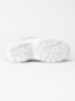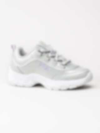Silverglittriga 90-tals sneakers Strada F Low Kids från FILA för barn. Retro-sneakers för den modemedvetna fashionistan! Logotyp på utsidan samt på ovandel och på bakskaft. 4-håls snörning i polyester som träs igenom öglor på plösen. Hälla i nylon på bakskaft som hjälpmedel vid påtagning. Textilfodrade med löstagbar innersula i textil. Tjock chunky sula med klack på ca 3 cm med platå på ca 2.5 cm.
