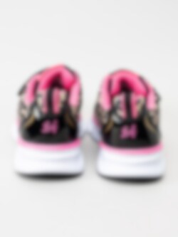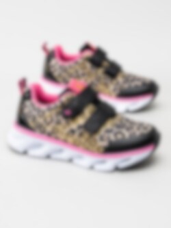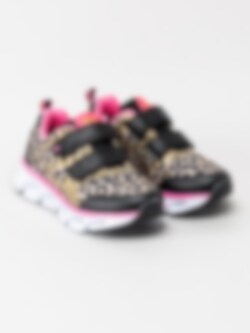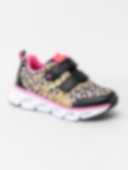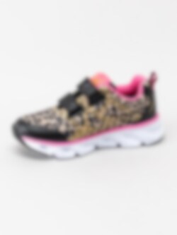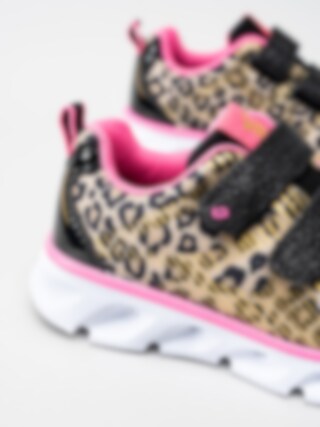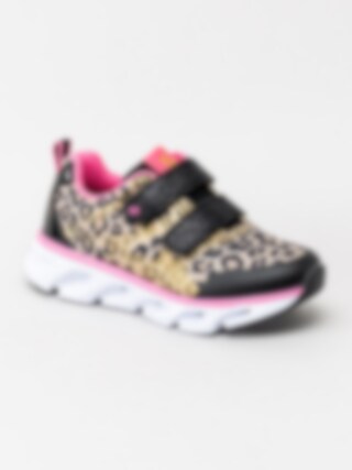 Bruna leopardmönstrade blinkskor Skalka från Leaf. Snygg rosa insida med coola detaljer såsom spänne i svart glitter, lackade partier baktill och blinkade lampor i färgerna blått, rosa, vitt och grönt.