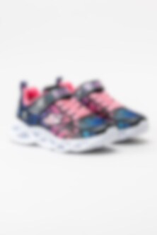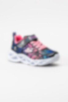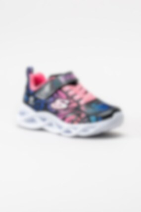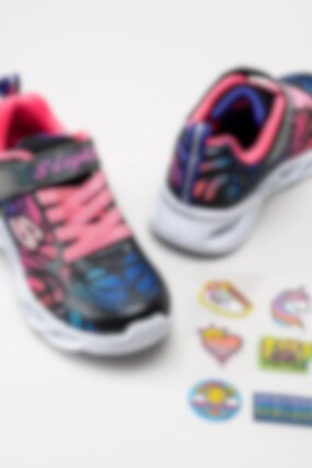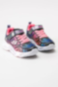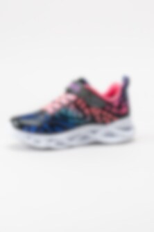 Skechers - Twisty Brights - Svarta glittriga blinkskor med rosa och blått mönster