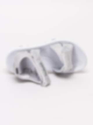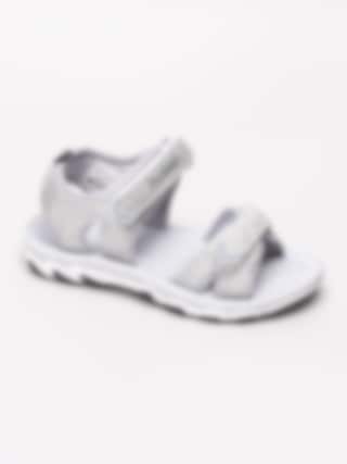 Silver glittriga barnsandaler Sandal Glitter Jr från Hummel tillverkade i syntet. Präglad logga på kardborreband som detalj. Två justerbara kardborreband, över tåparti och vrist som öppning samt för att anpassa passformen. Foder i textil och ljusgrå innersula i syntet med präglat mönster. Vit yttersula i syntet med svarta partier och mönster.