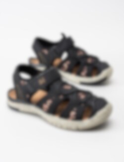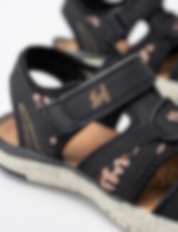 Leaf - Salo - Svarta sandaler med leopardmönster