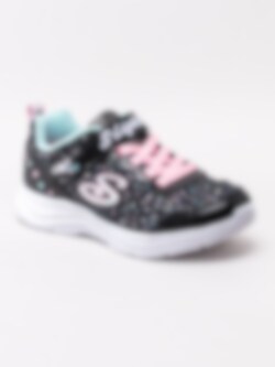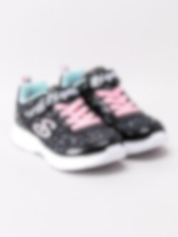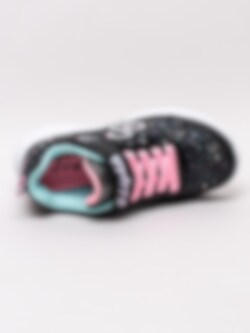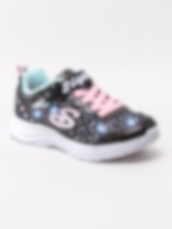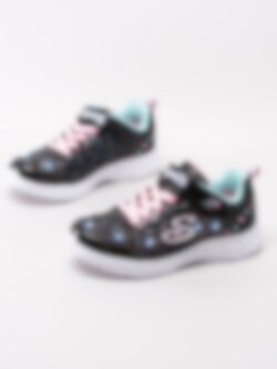 Svarta glittriga blinkskor från Sketchers. Gör vardagen roligare med ett par skor som blinkar. Textilfodrade med en skön sula och rosa skosnören. Tuffa blinkskor som du kan lätt kan stänga av med hjälp av ON/OFF knappen på kardborrebandet. En favorit hos barnen!