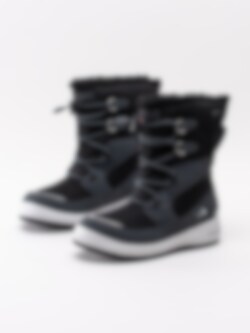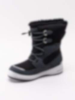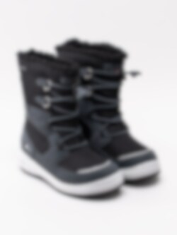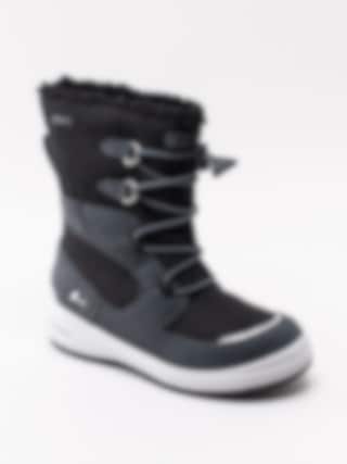 Svarta vinterstövlar Totak från Viking tillverkade i textil. Varma vinterstövlar för barn med Gore-Tex membran som gör stövlarna vattentäta samtidigt som de andas. Snöra åt stövlarna med resårsnörning och dragsko. Skaftmudd i fuskpäls som detalj. Reflex-rand längs tåparti.