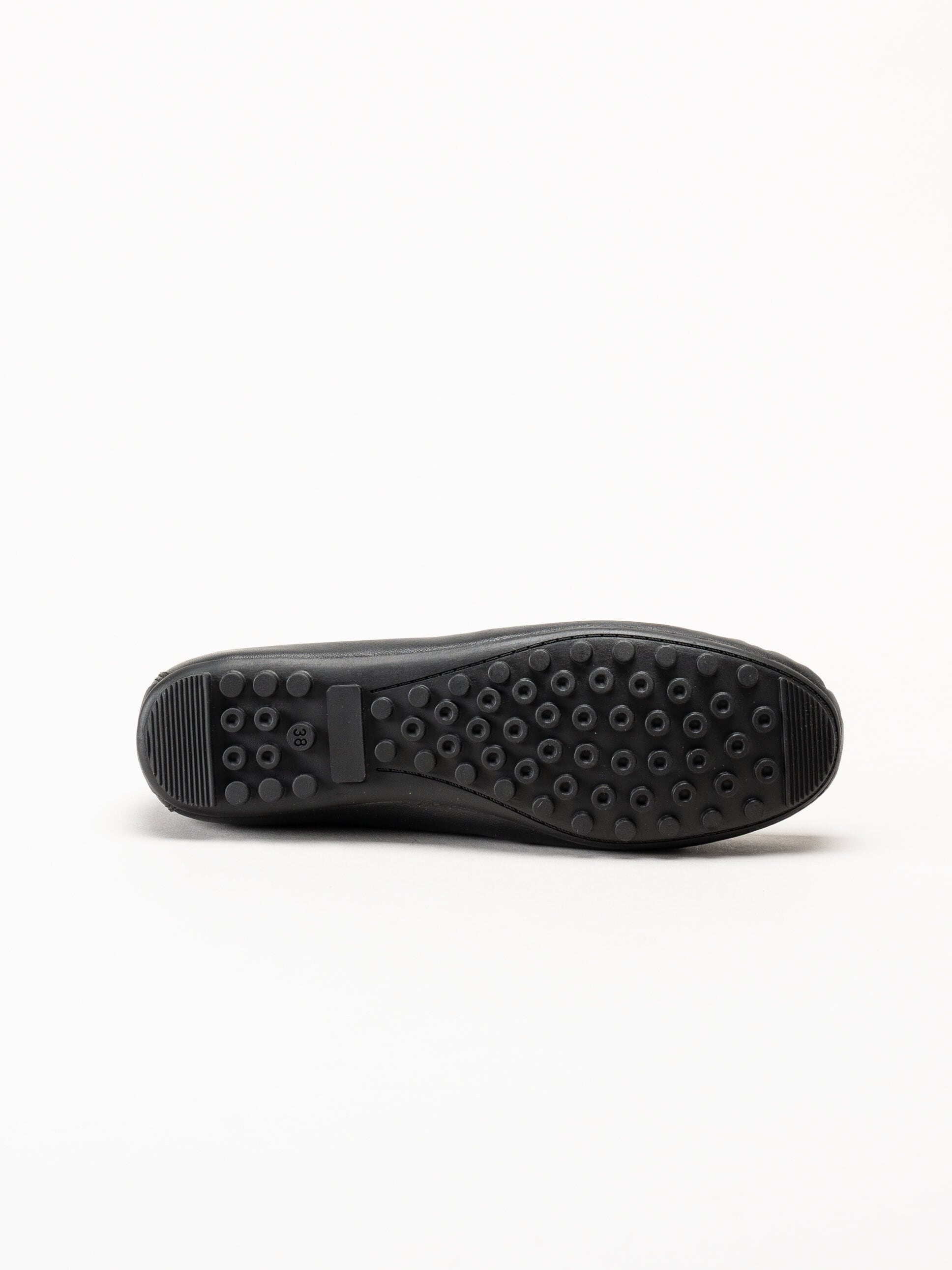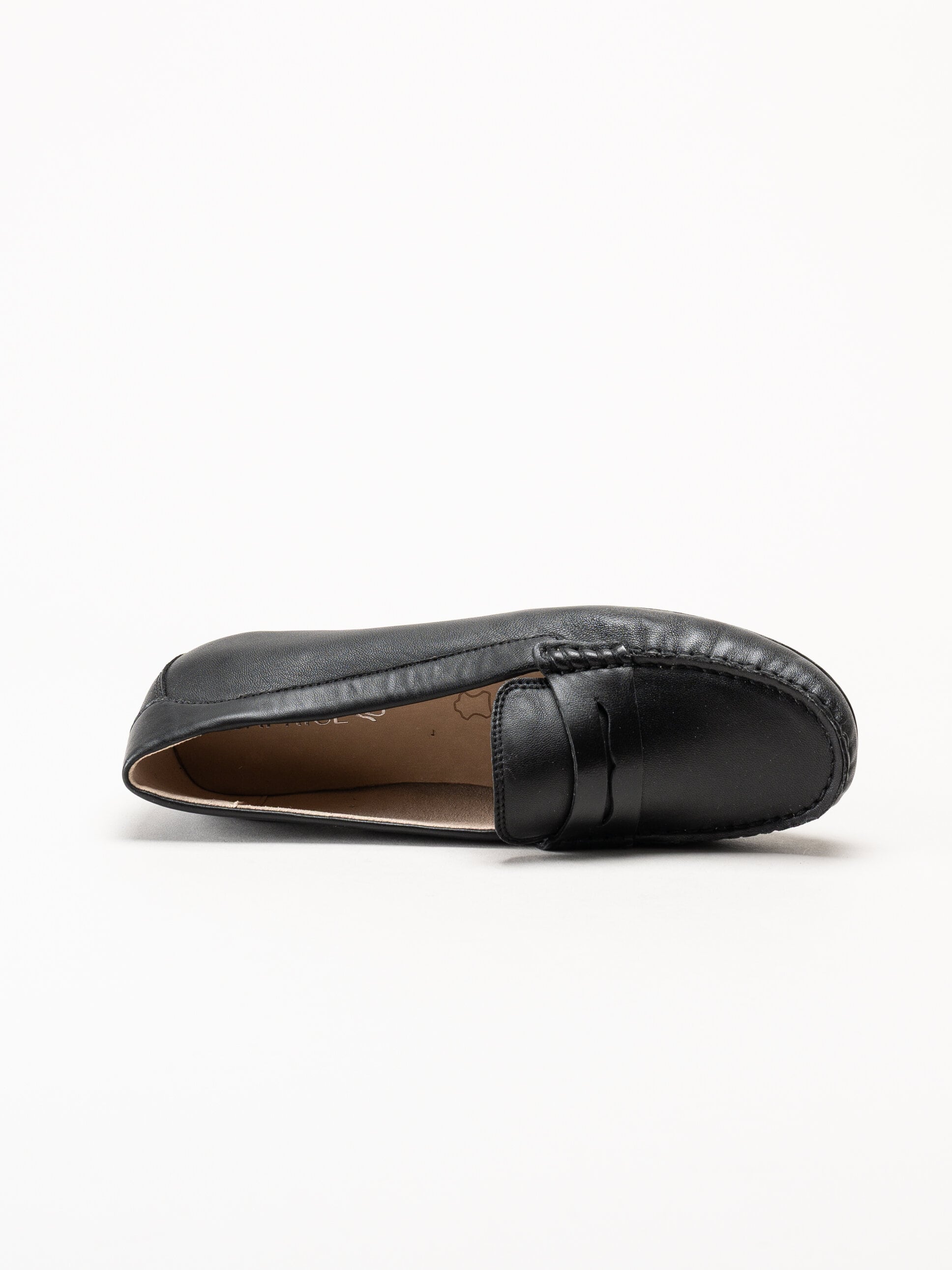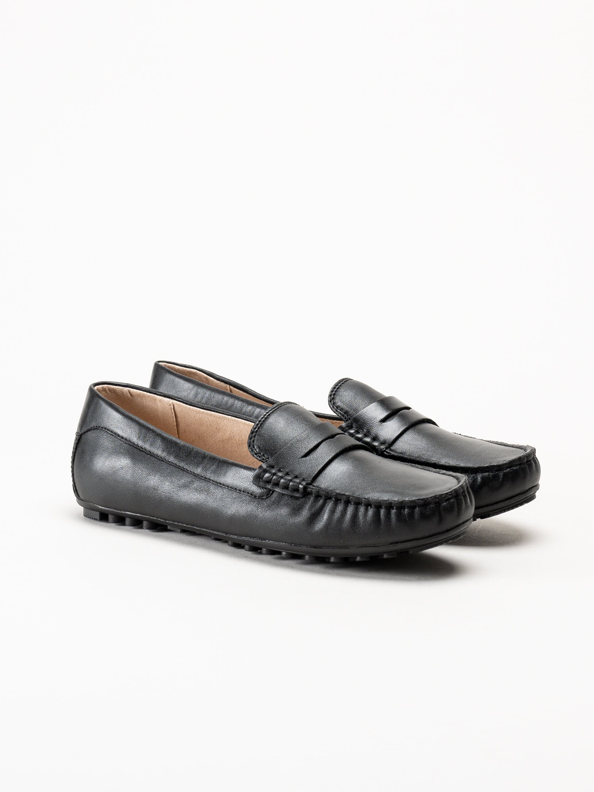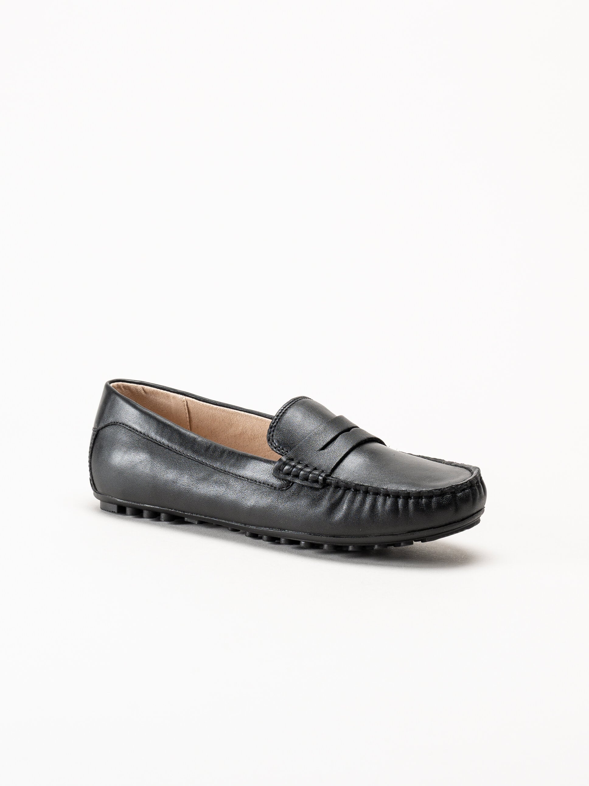 Svarta loafers i skinn från Caprice i färgen Black Nappa. Skorna är tillverkade i mjuk skinn som ger ett elegant och tidlöst uttryck, perfekt för både vardag och mer uppklädda tillfällen. Invändigt är modellen fodrade med textil för en behaglig känsla mot foten, och innersulan i skinn med Caprices Airmotion-teknologi ger mjuk dämpning och extra komfort under hela dagen. Yttersulan i slitstark gummiblandning bidrar med stabilitet och bra grepp vid daglig användning.