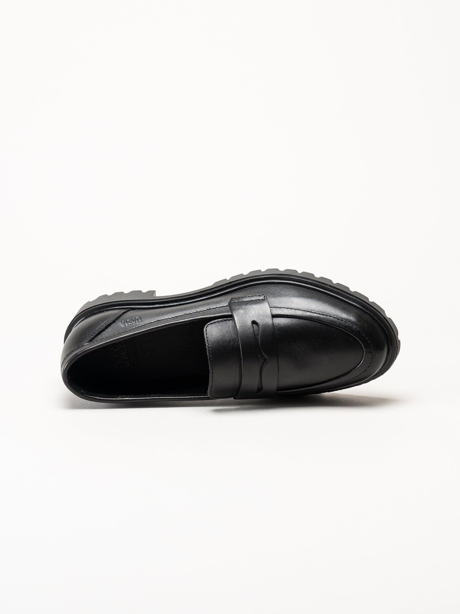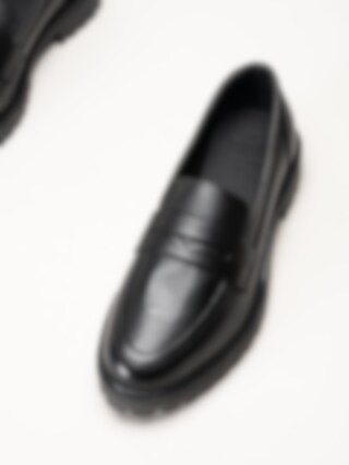 Svarta pennyloafers i skinn Lita från Dasia. Stilrena och moderna loafers tillverkade i mjukt och följsamt skinn som ger ett elegant och tidlöst intryck. Den klassiska pennyloafer-designen kombineras med en trendig, grov sula som skapar en uppdaterad och självsäker look.