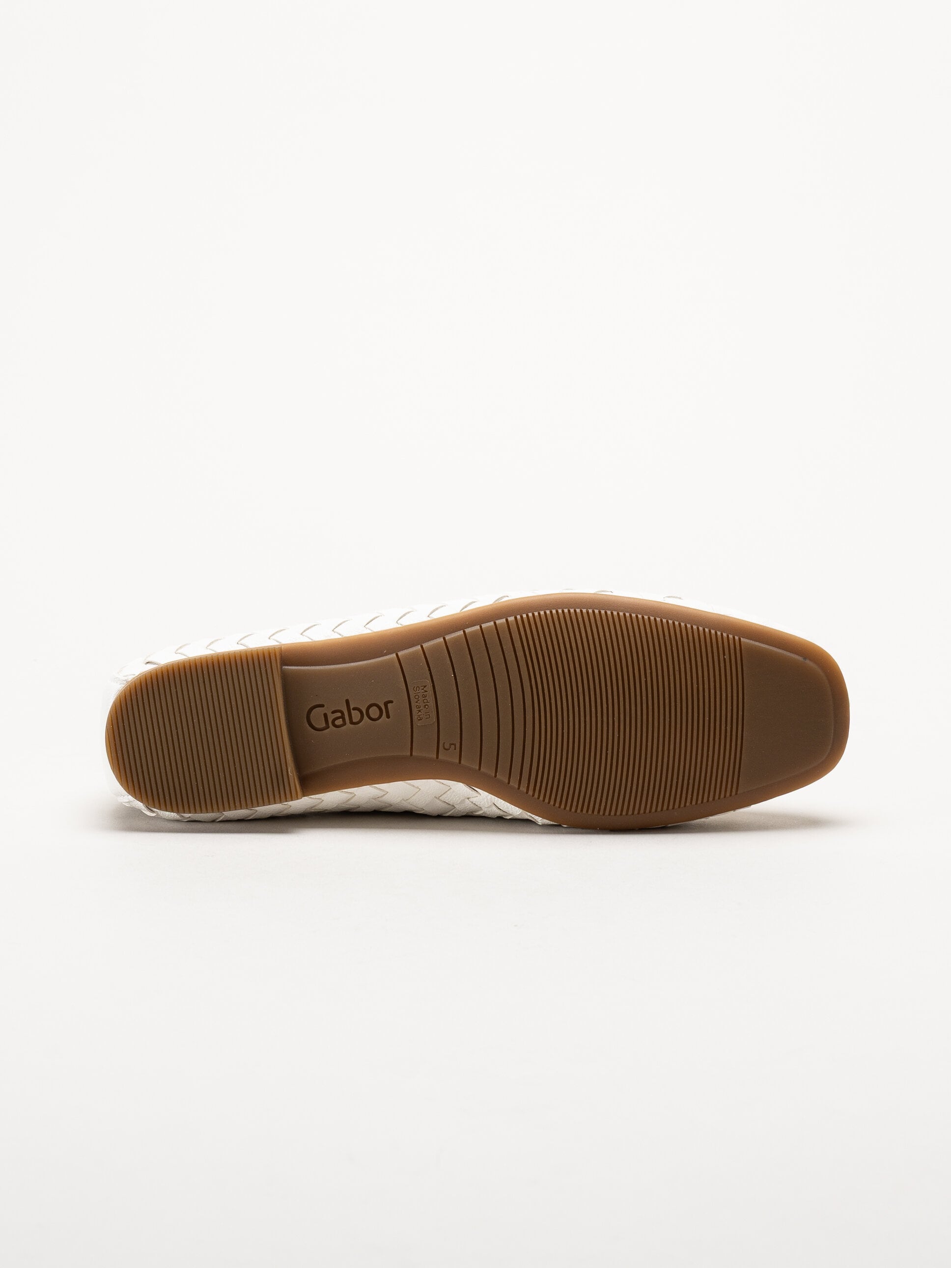 Vita ballerinaskor i skinn från Gabor i färgen Creme. Skorna är tillverkade i mjukt och följsamt skinn som ger ett stilrent och elegant utseende, med en klassisk ballerinaskosilhuett. Invändigt är skorna fodrade med skinn för en mjuk och behaglig känsla mot foten, och innersulan i skinn bidrar med komfort och dämpning under hela dagen.