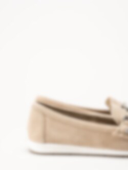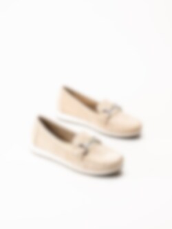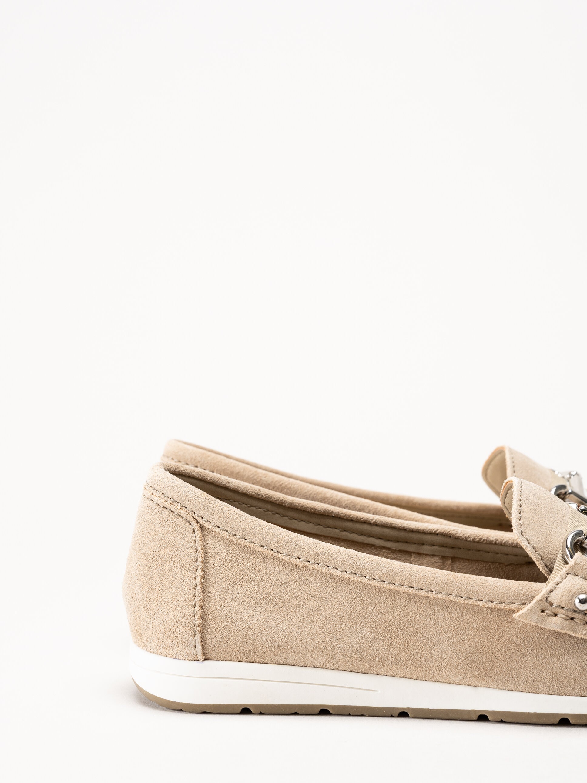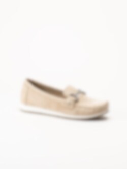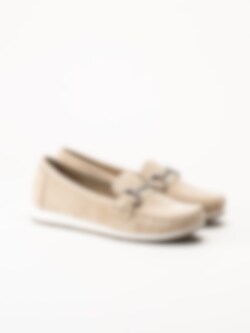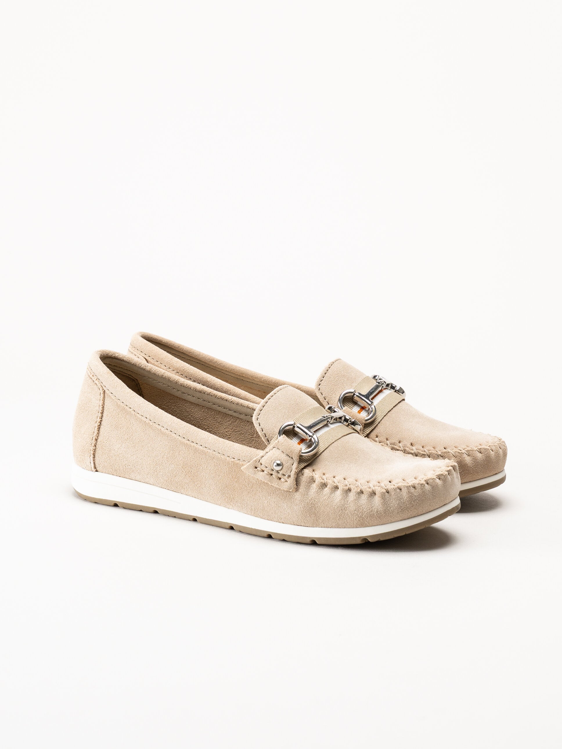 Beige loafers i mocka från Marco Tozzi i färgen Light Tan. Skorna är tillverkade i mjuk mocka som ger ett stilrent och tidlöst uttryck med en elegant känsla. Det dekorativa spännet framtill tillför en sofistikerad detalj som lyfter designen.