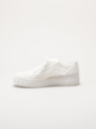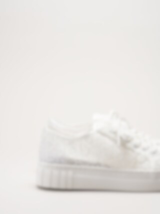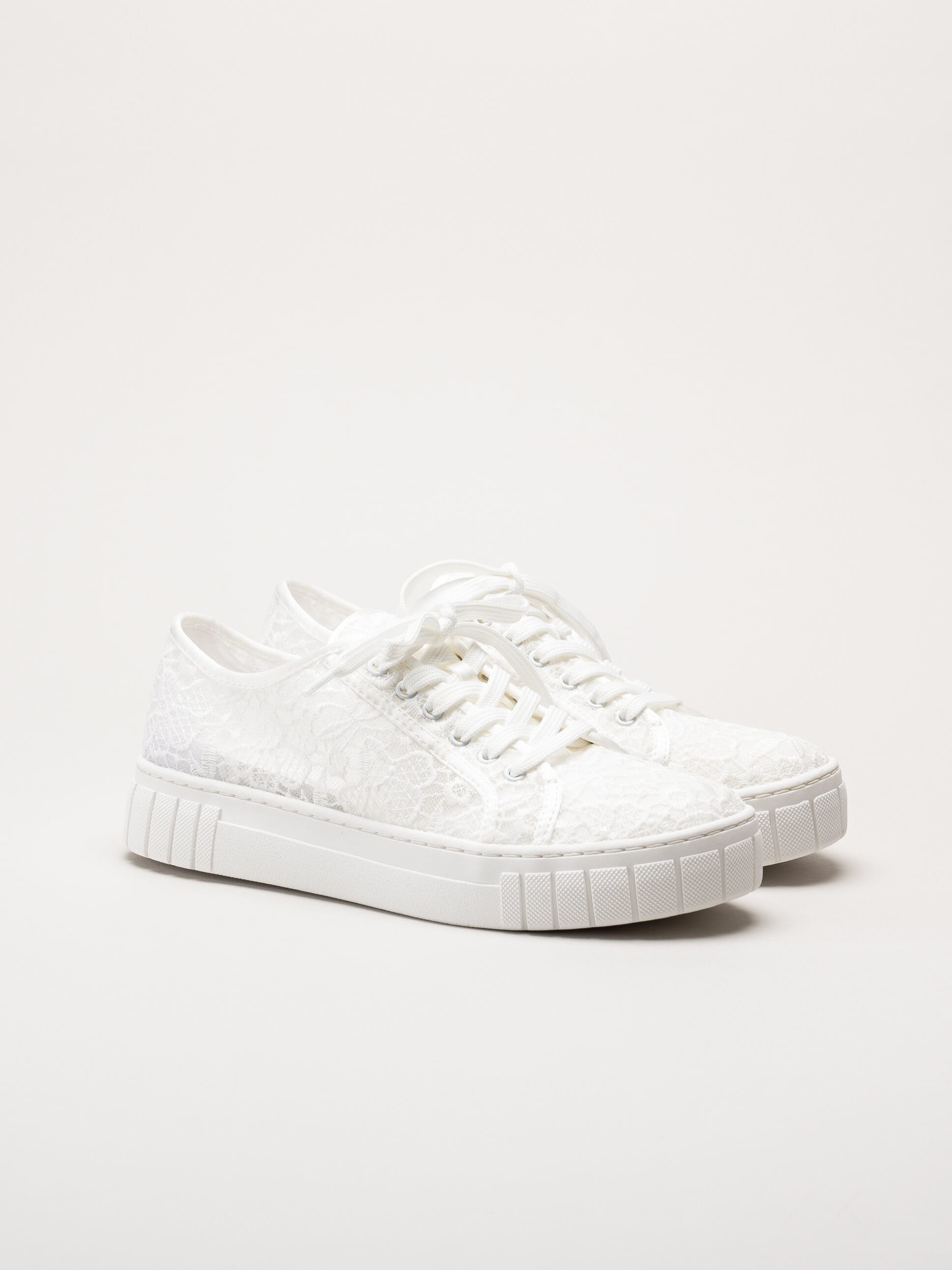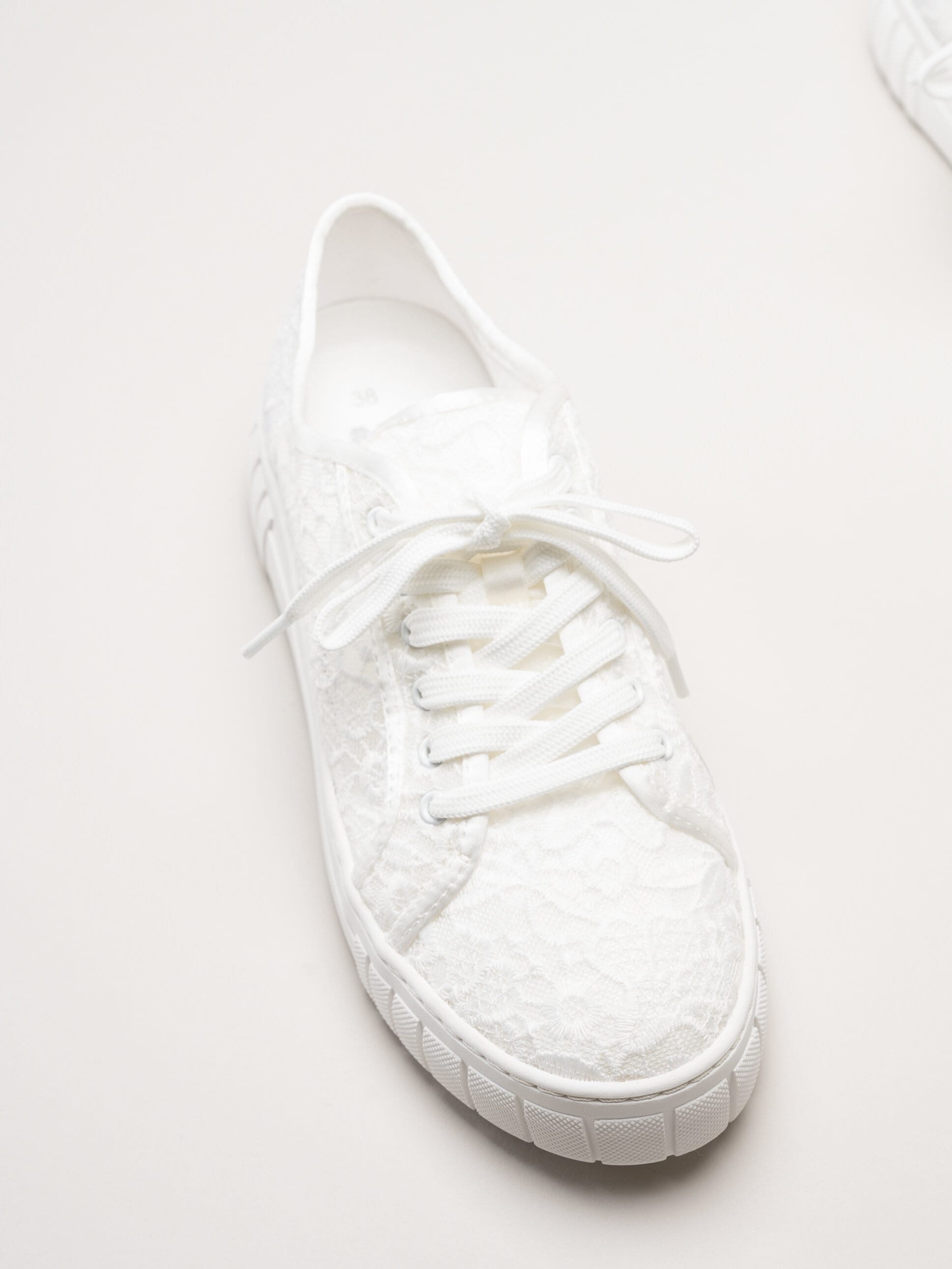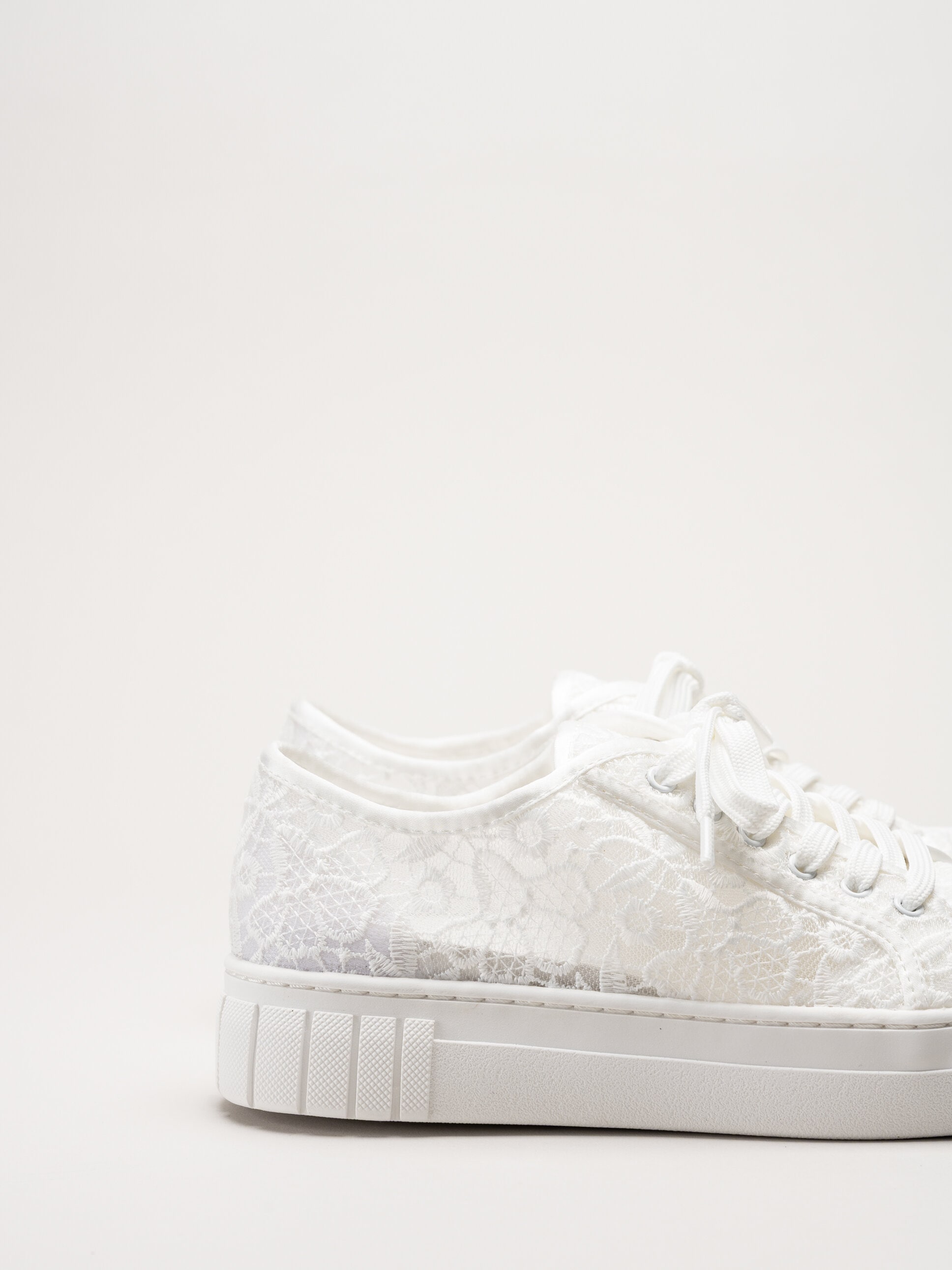 Vita broderade snörskor från Marco Tozzi. Skorna är tillverkade i en kombination av macramé och satin som ger ett romantiskt och elegant uttryck. Macramé är en dekorativ knytteknik där trådar knyts i mönster, vilket skapar ett vackert, luftigt och detaljerat utseende, perfekt för festliga tillfällen. Den klassiska snörningen framtill gör det enkelt att justera passformen för en bekväm och säker känsla.
