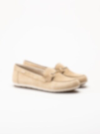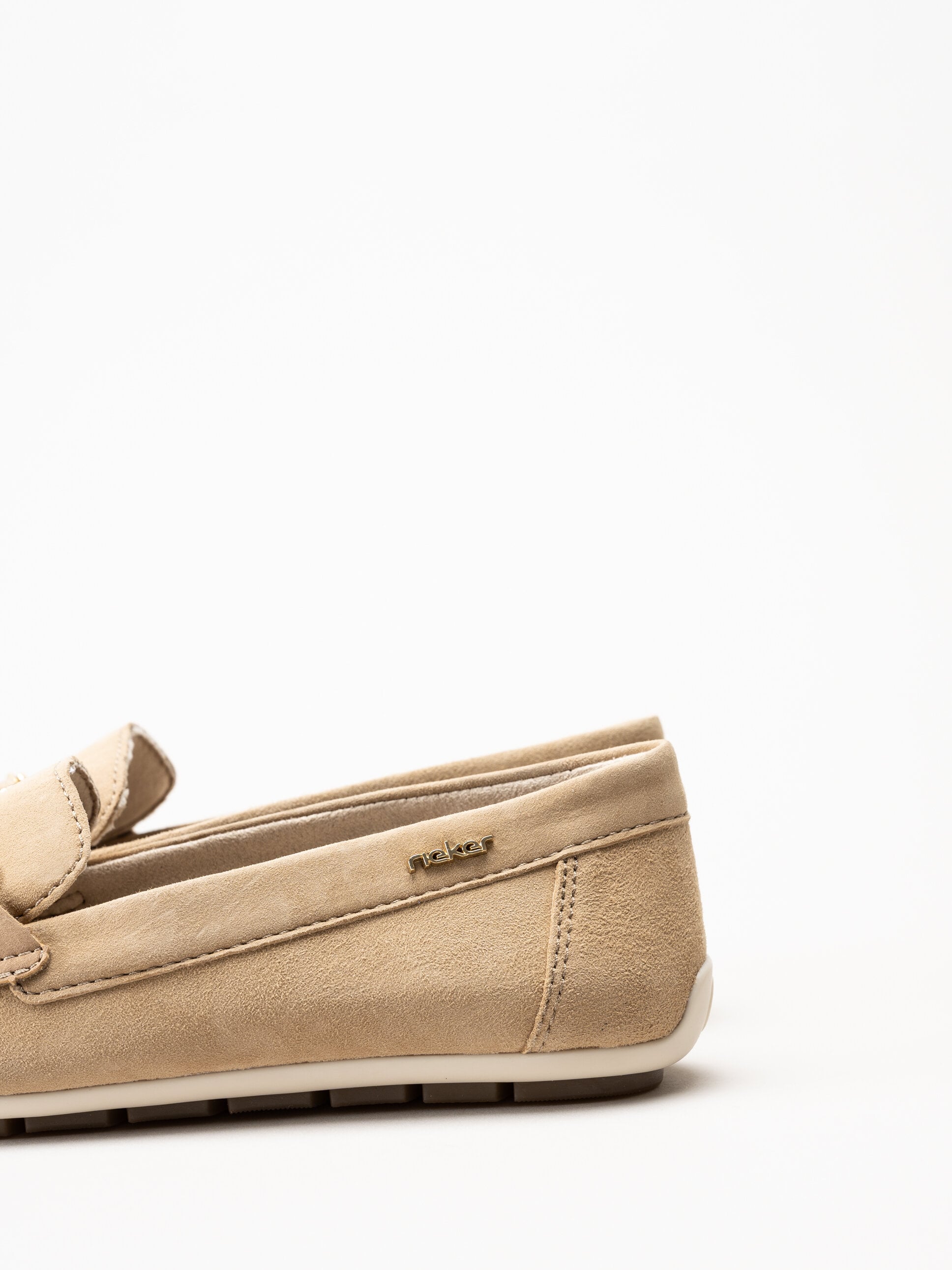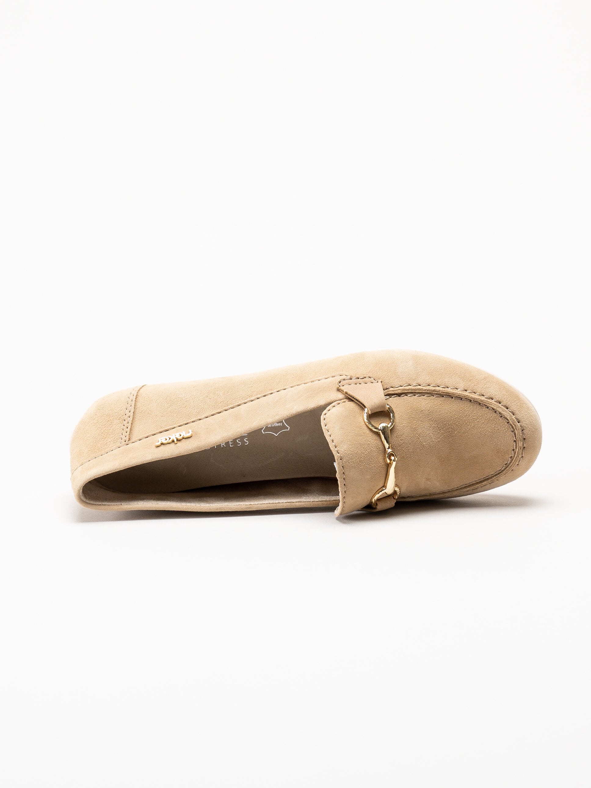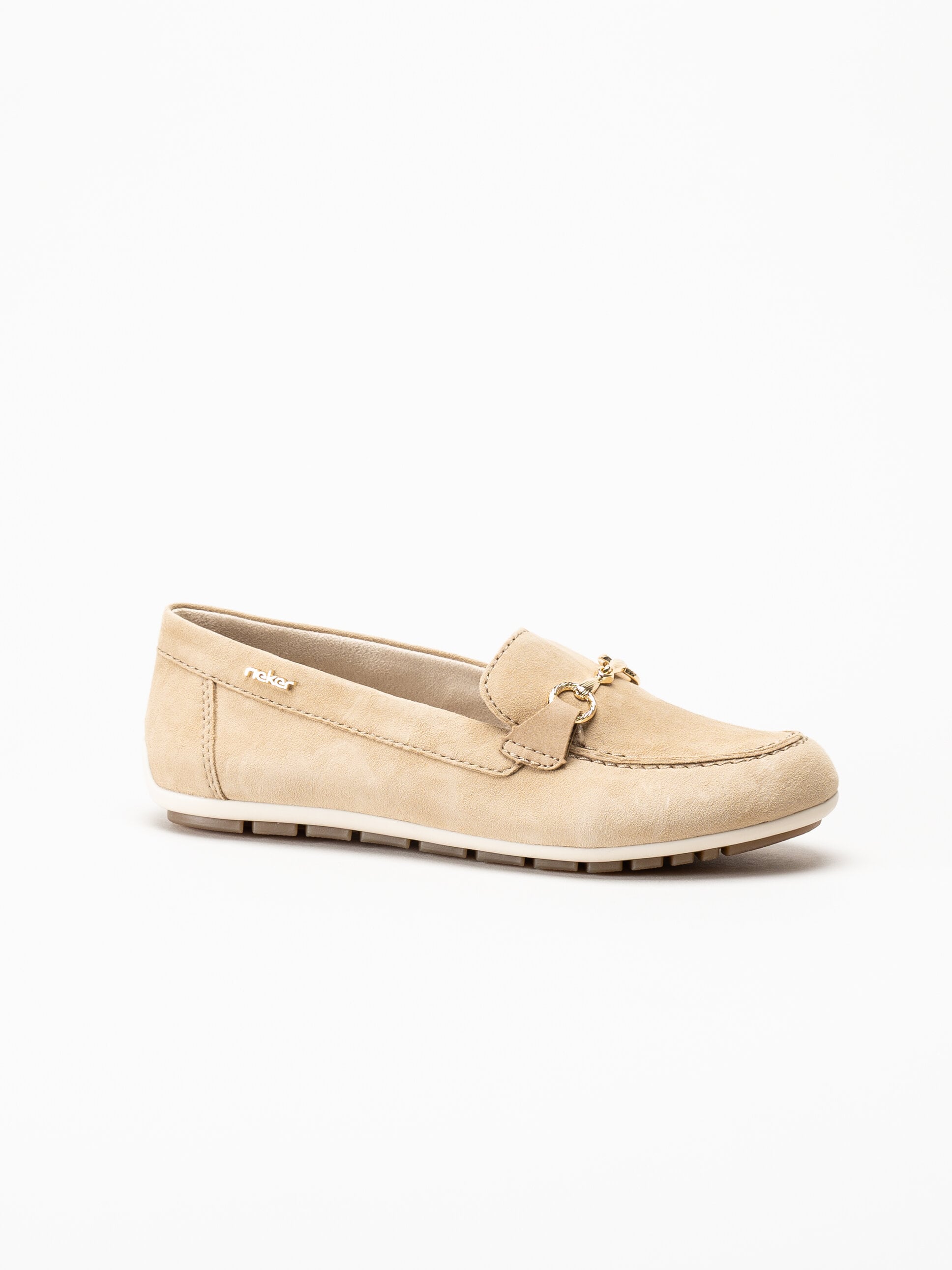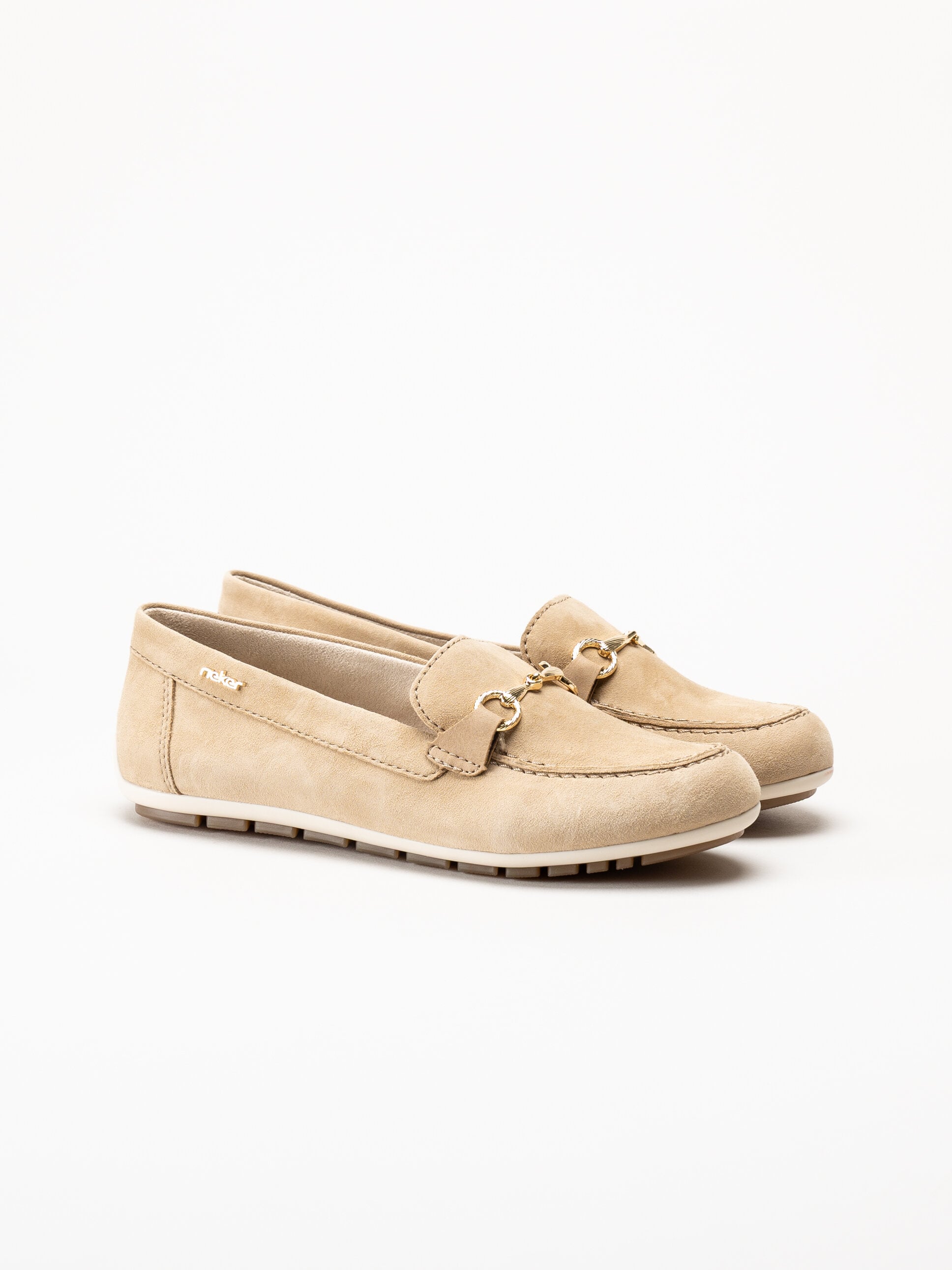 Beige loafers i mocka från Rieker i färgen Sepia. Skorna är tillverkade i mjuk mocka som ger ett stilrent och elegant uttryck. Den klassiska loafersmodellen kompletteras av ett guldfärgat spänne framtill som tillför en sofistikerad detalj. Med Antistress Rieker får du en lätt, flexibel och stötdämpande sko, och F 1/2-lästen ger en något rymligare och bekväm passform.