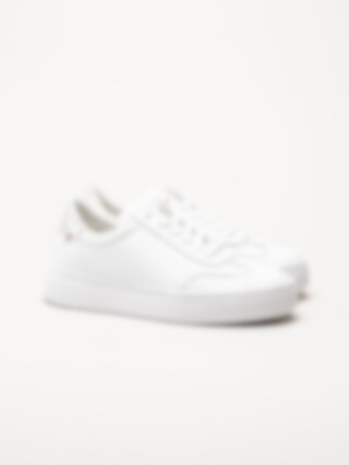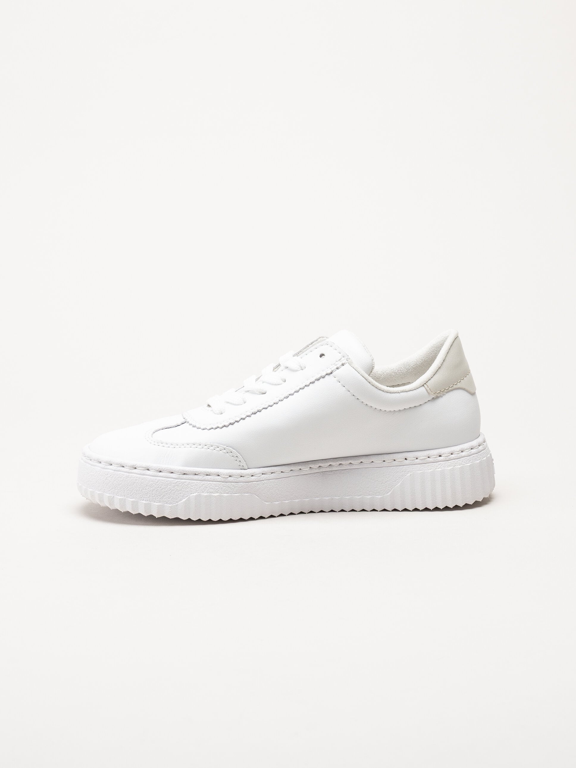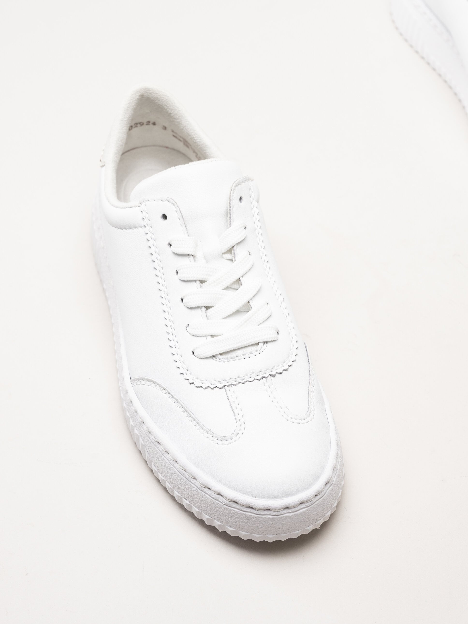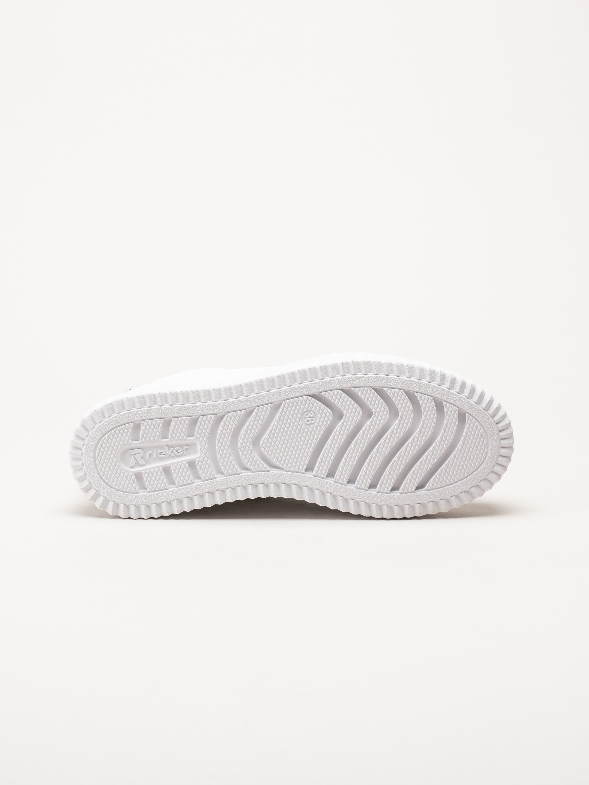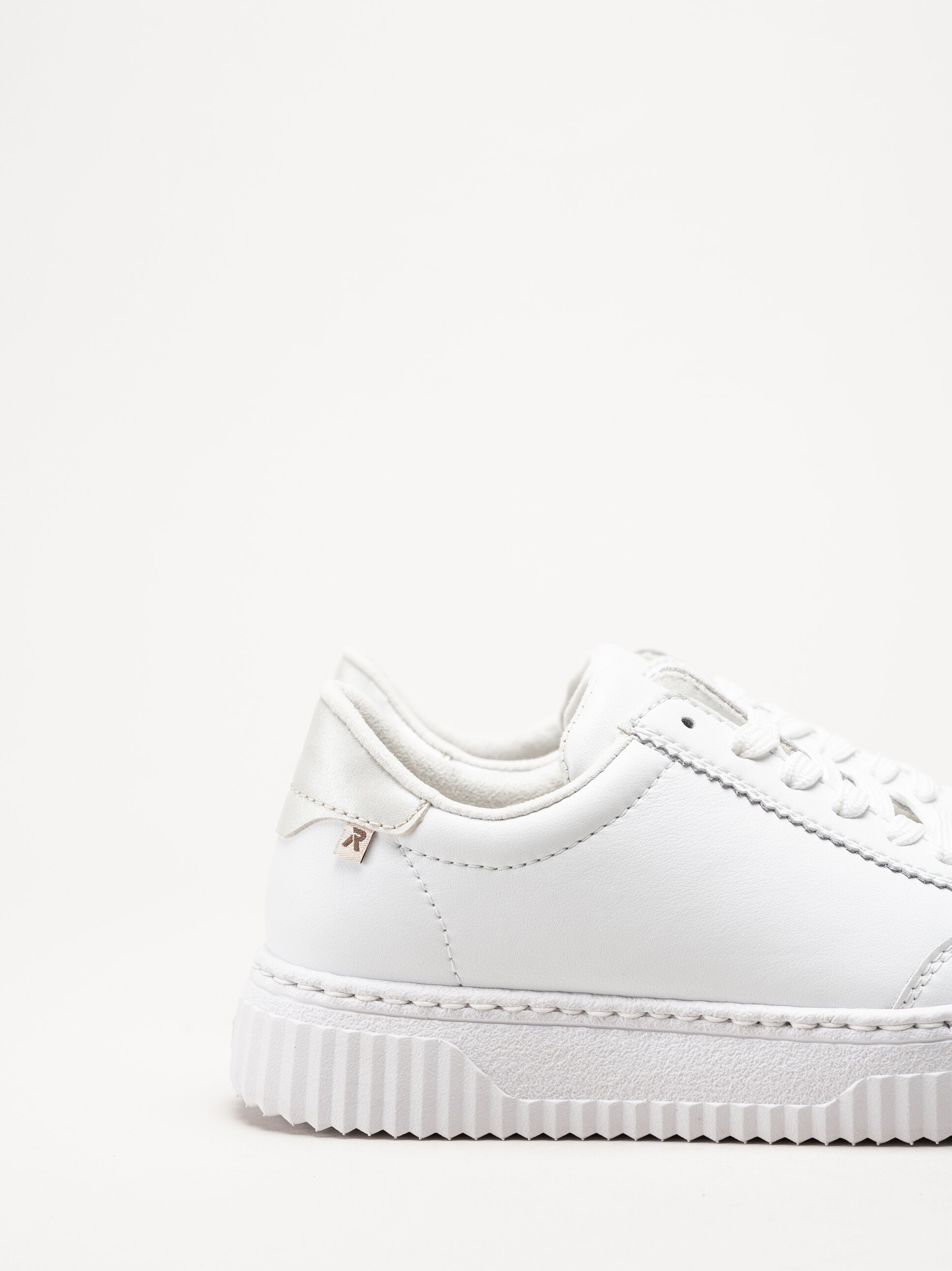 Vita sneakers i skinn från Rieker. Skorna är tillverkade i mjukt skinn som ger en stilren och följsam känsla. Den klassiska snörningen framtill gör det enkelt att justera passformen för en stabil och bekväm känsla, samtidigt som den tidlösa designen gör modellen lätt att matcha till olika vardagsstilar.