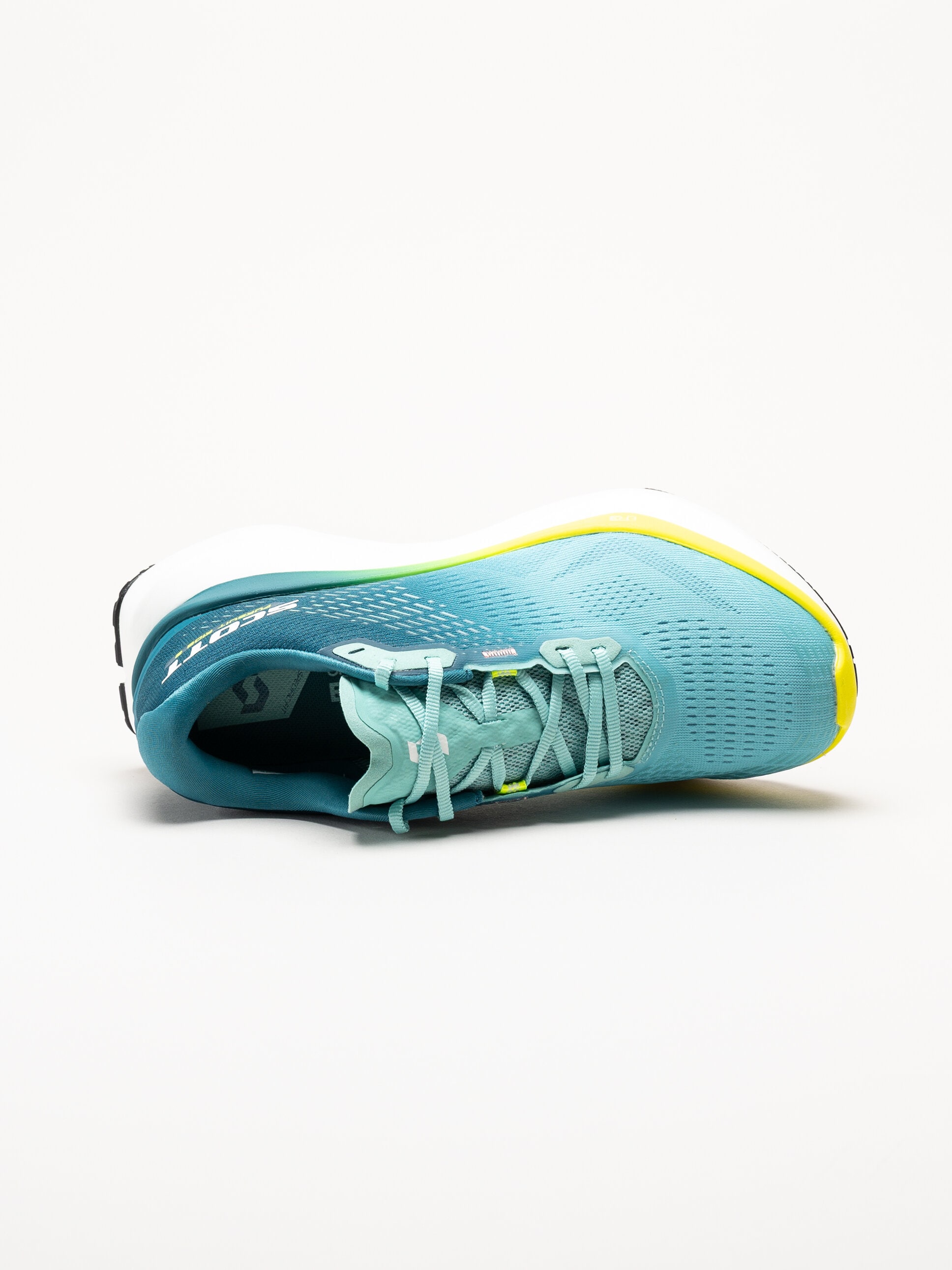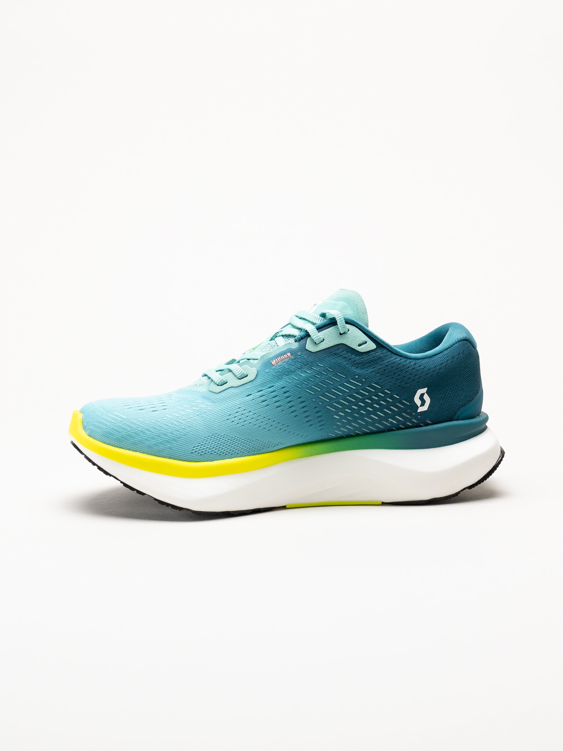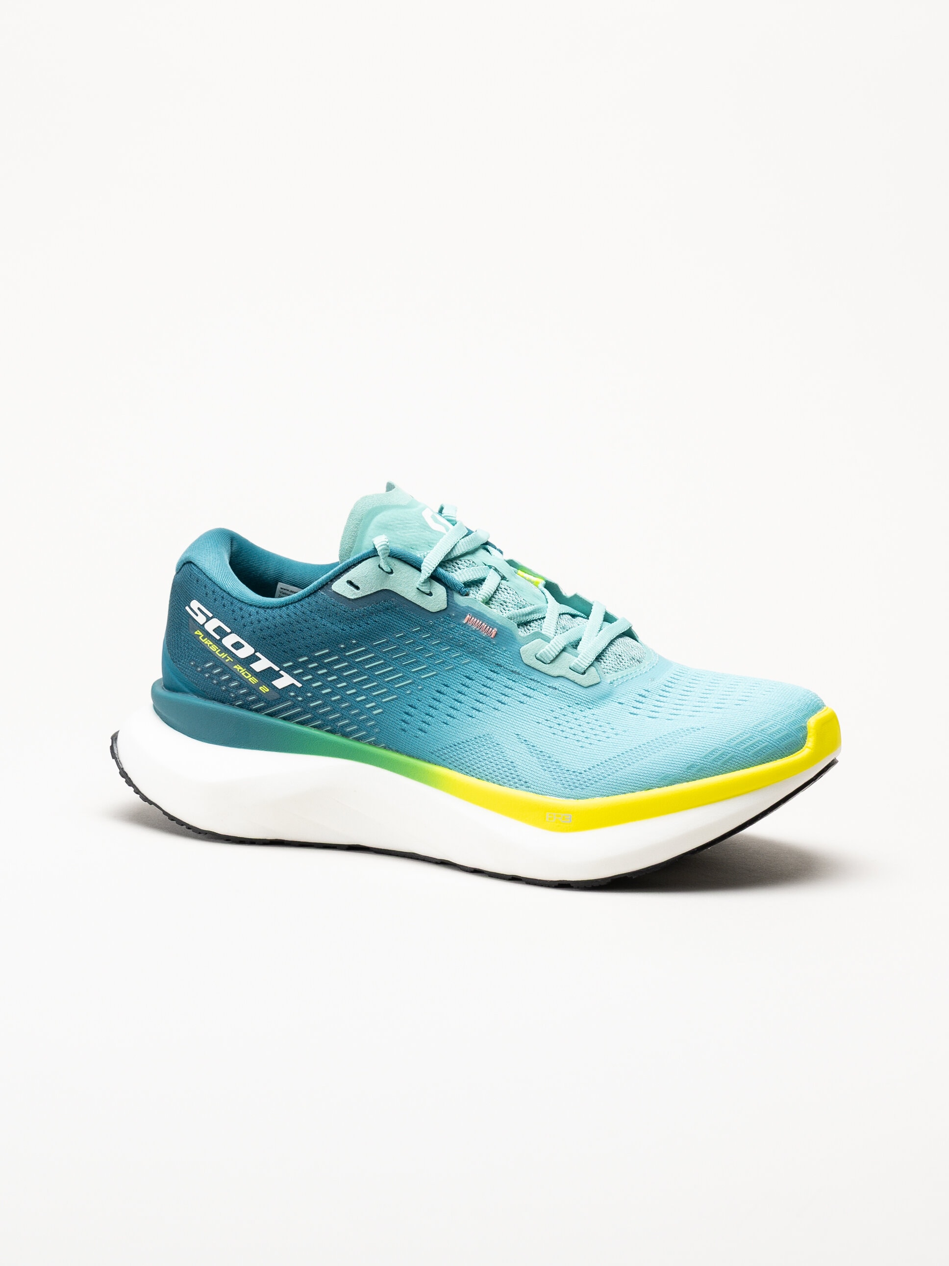 Turkosgröna löparskor Pursuit Ride 2 från Scott i färgen Cascade Blue. Skorna är en mångsidig och tekniskt avancerad löparsko som kombinerar komfort och funktion. Den nya mellansulan ger mjuk dämpning och energiåtergivning i varje steg, medan yttersulan med ER3 Evolved Rocker Technology skapar framåtsträvande energi och stabilitet på både asfalt och grus.