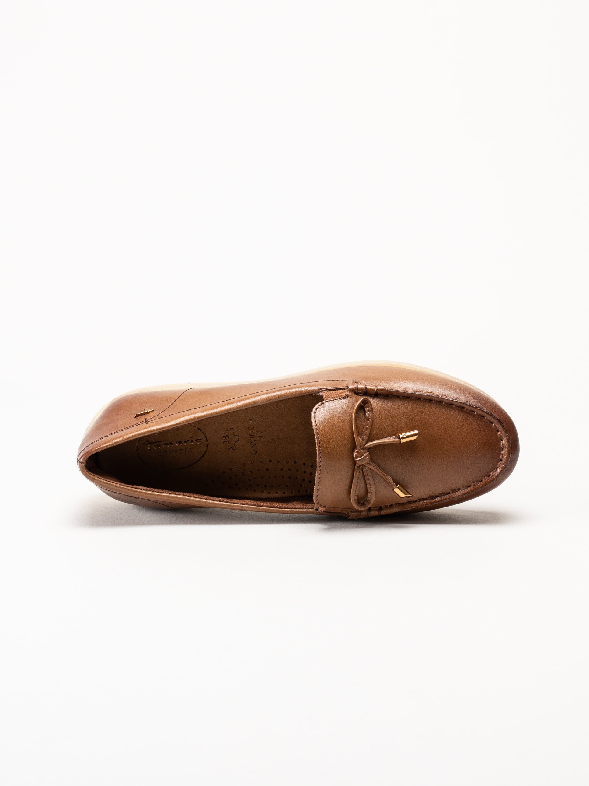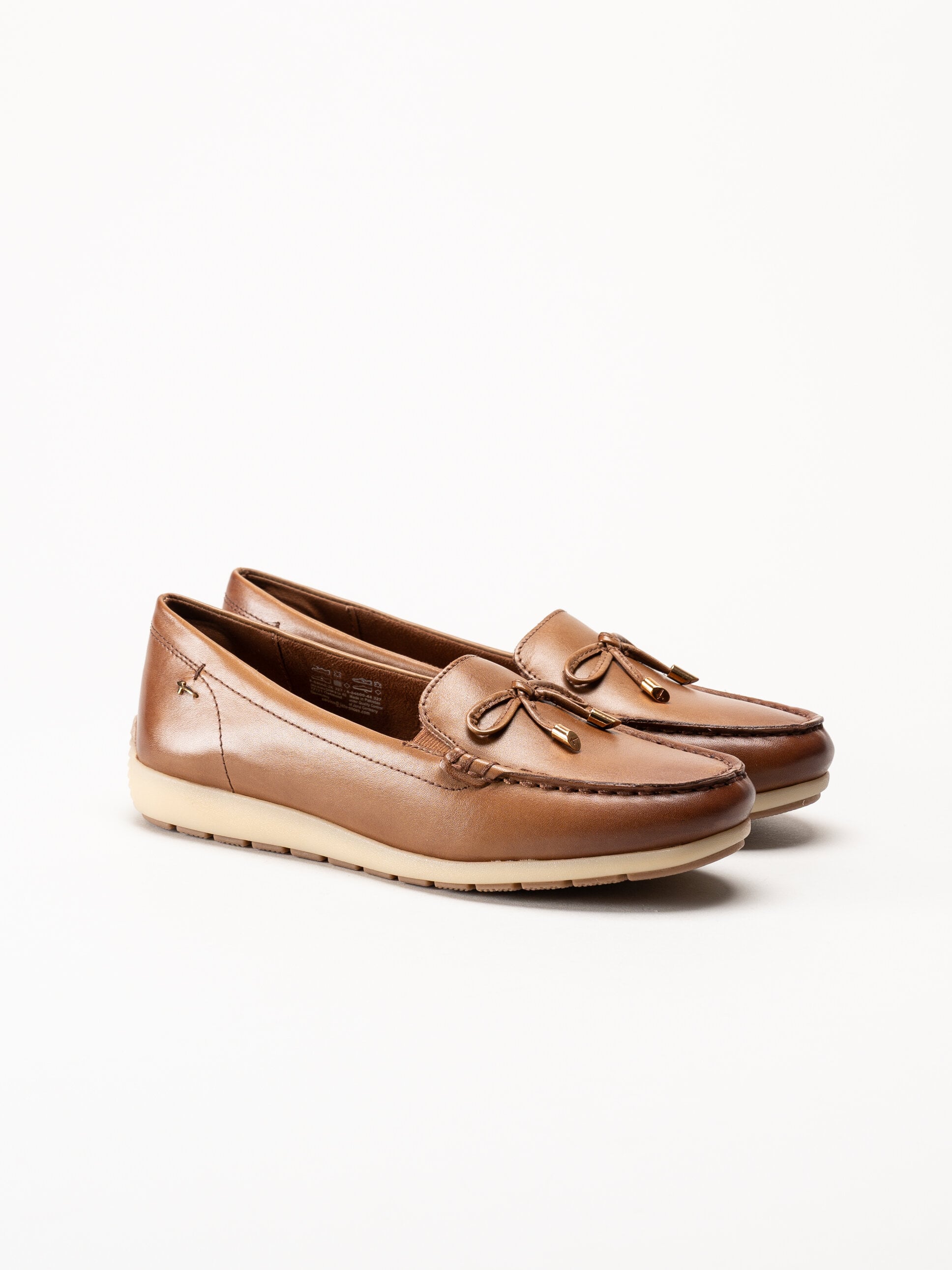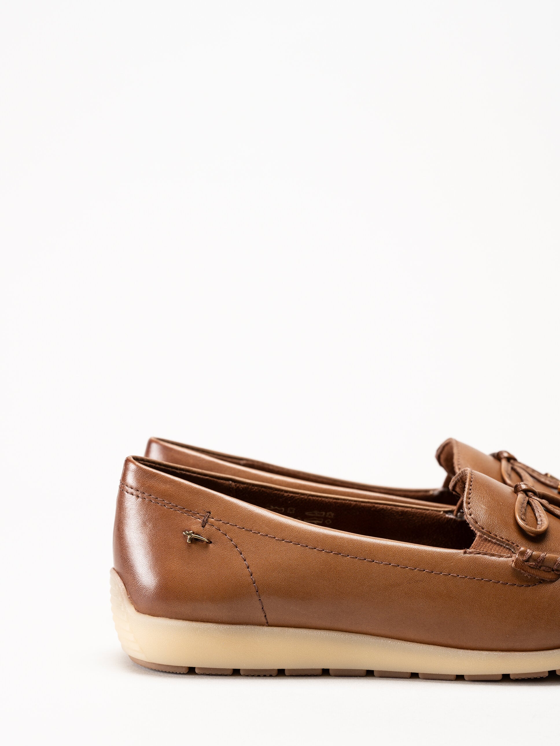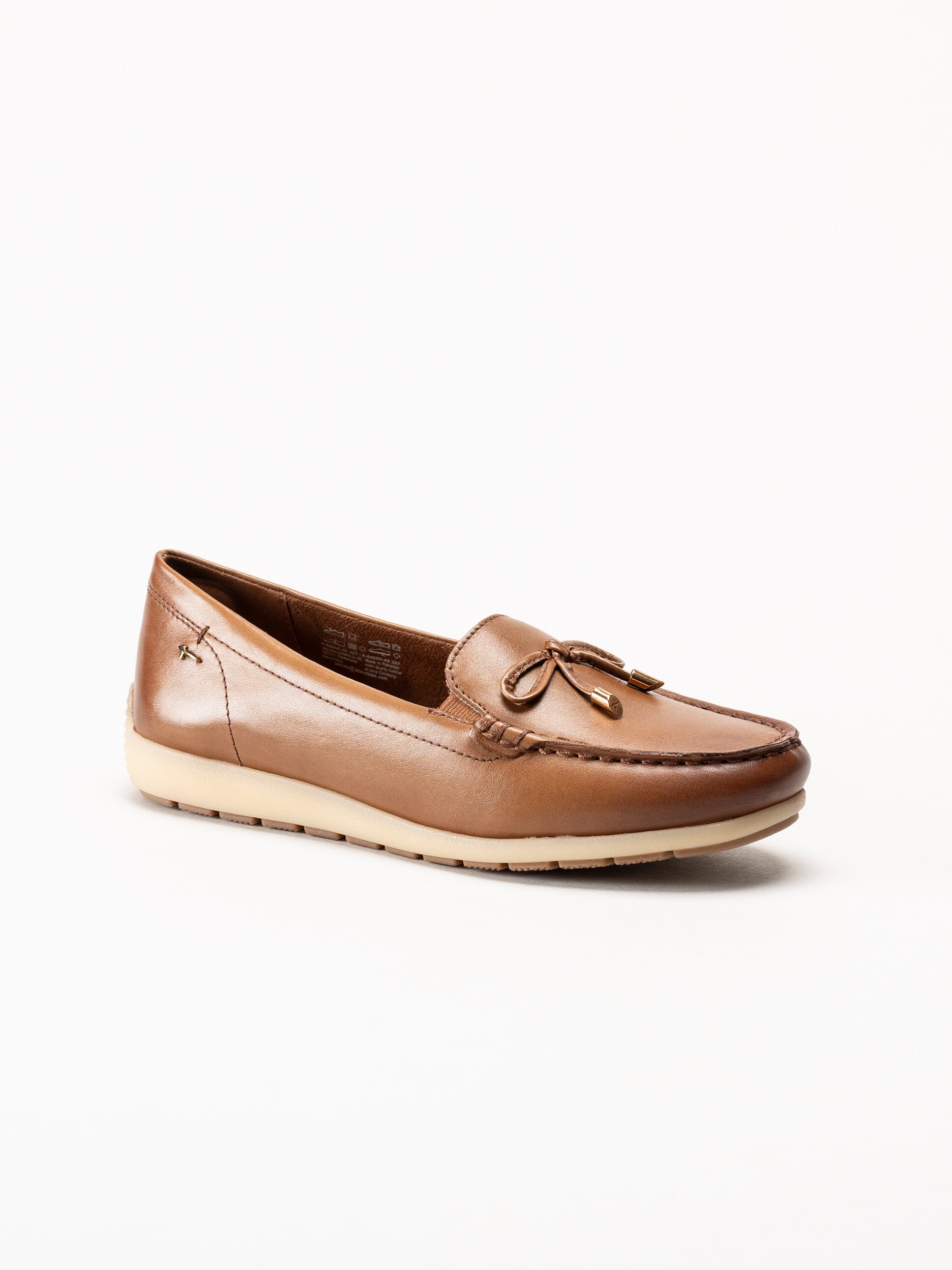 Bruna loafers i skinn från Tamaris Comfort i färgen Cognac Nappa. Skorna är tillverkade i mjukt skinn som ger ett elegant och tidlöst uttryck med hög komfort. Den dekorativa rosetten framtill tillför en feminin detalj som lyfter designen.