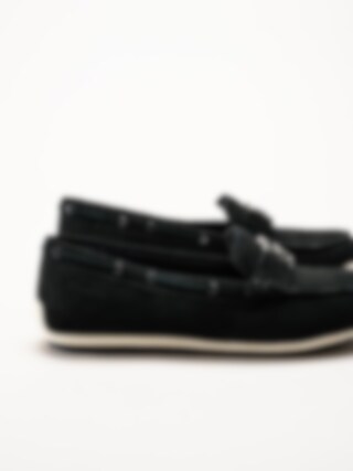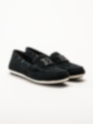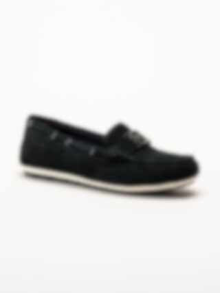 Tamaris - Mörkblå mockasinloafer i mocka