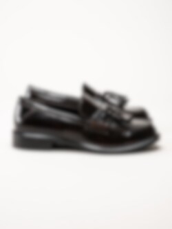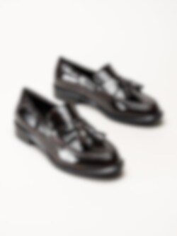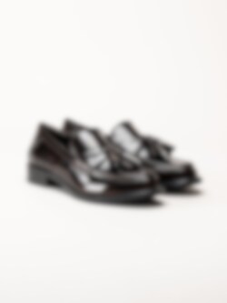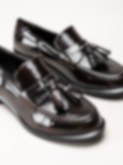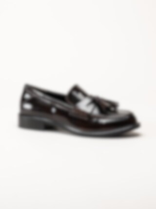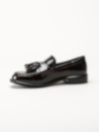 Tamaris - Mörkbruna loafers i lack