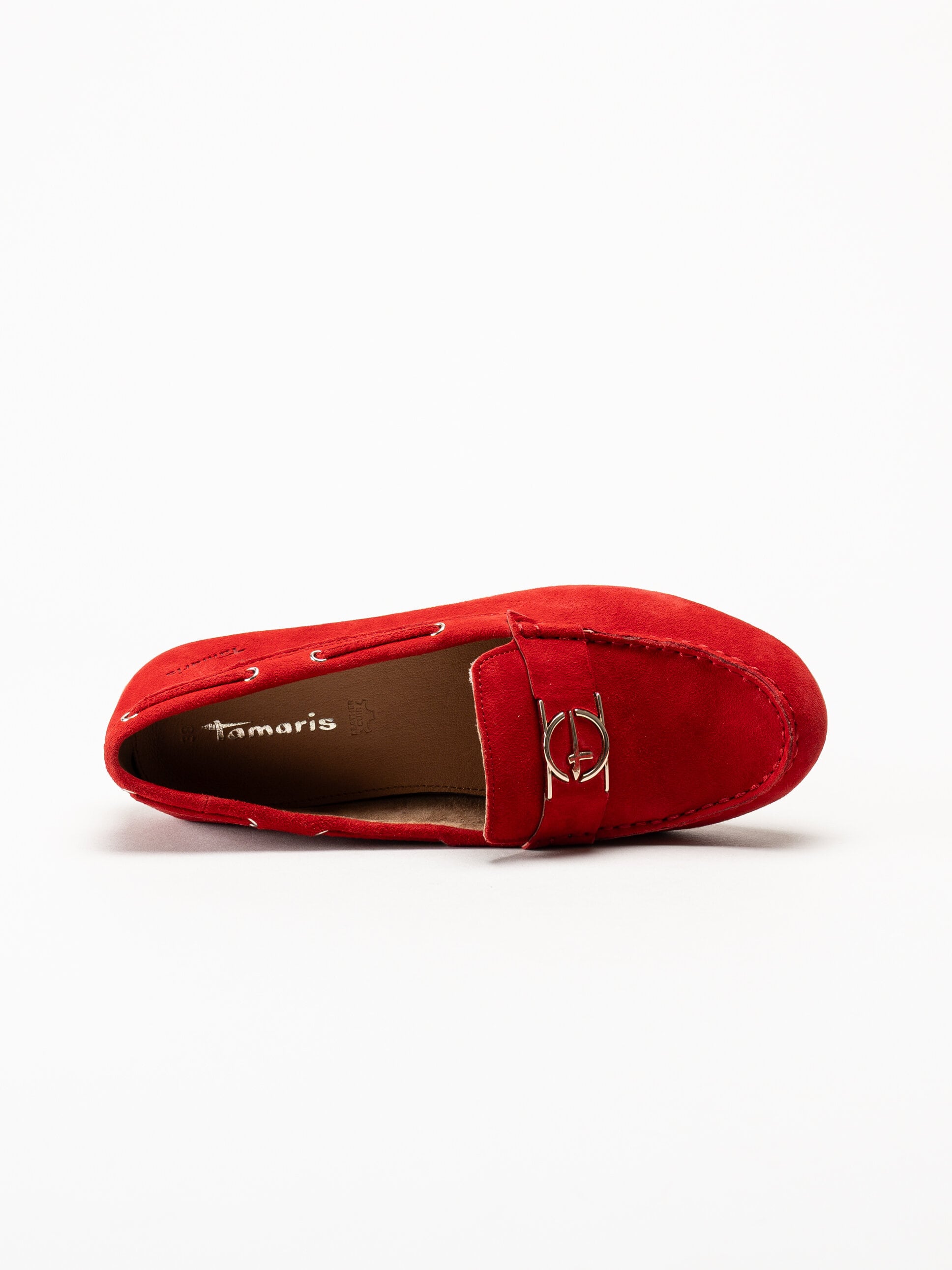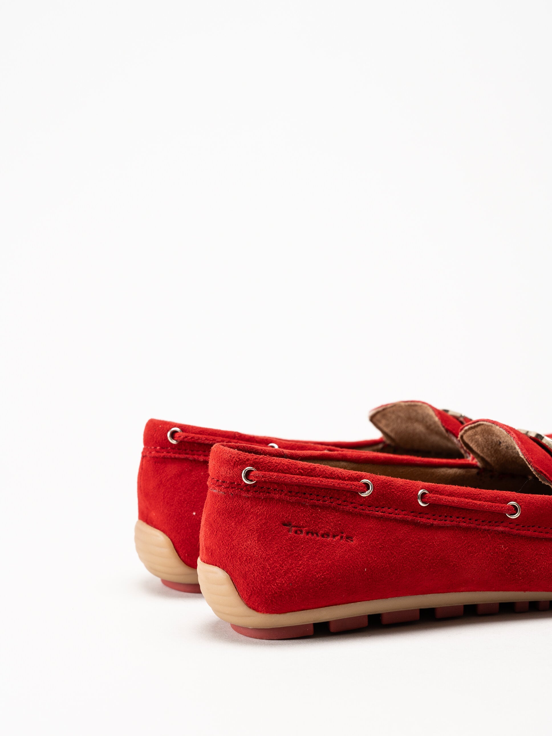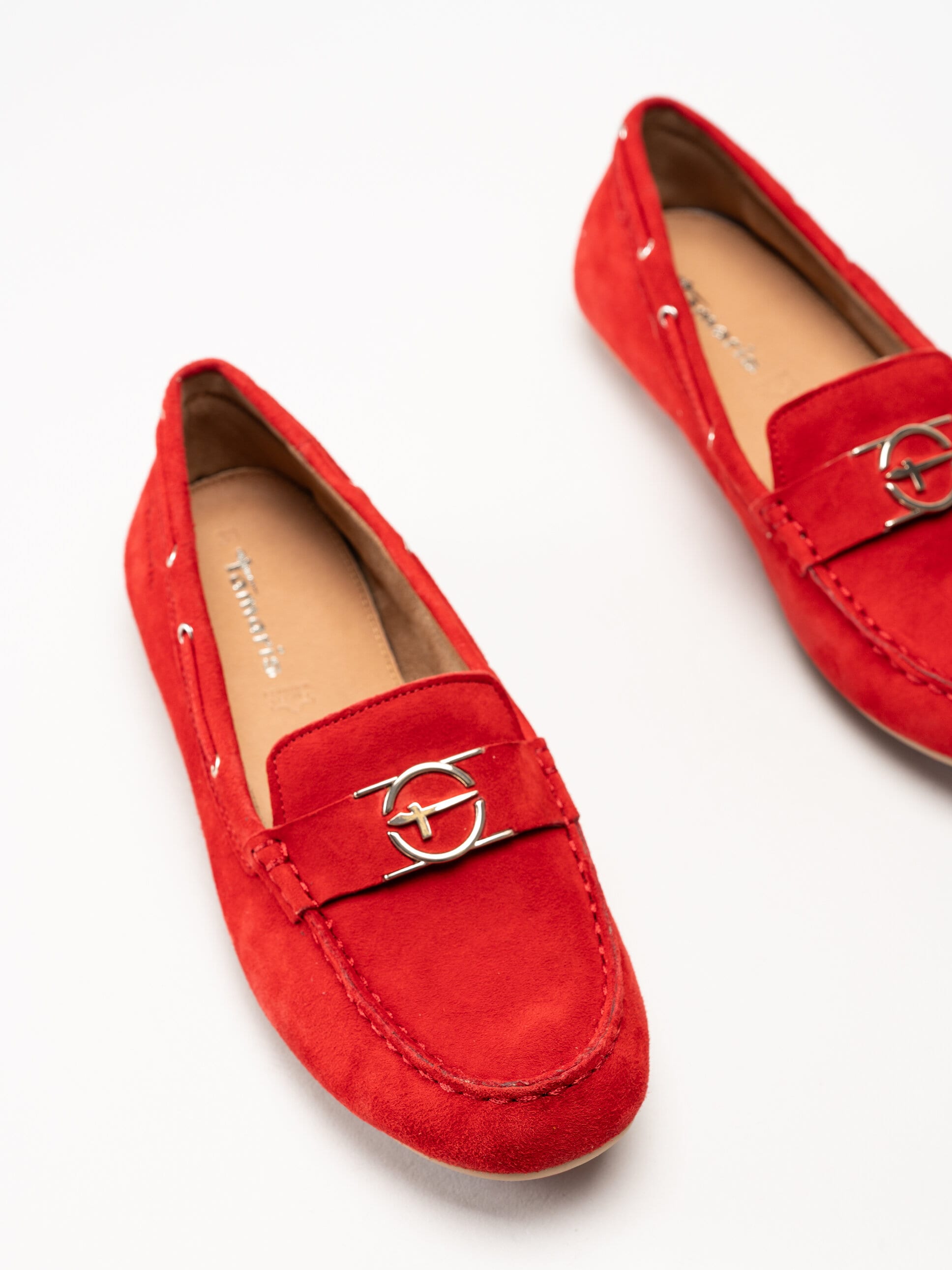 • Tamaris - Röda loafers i mocka