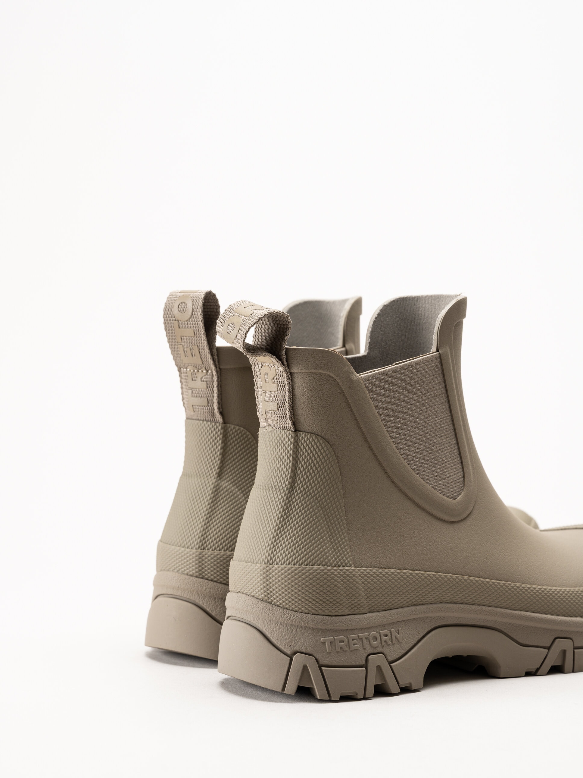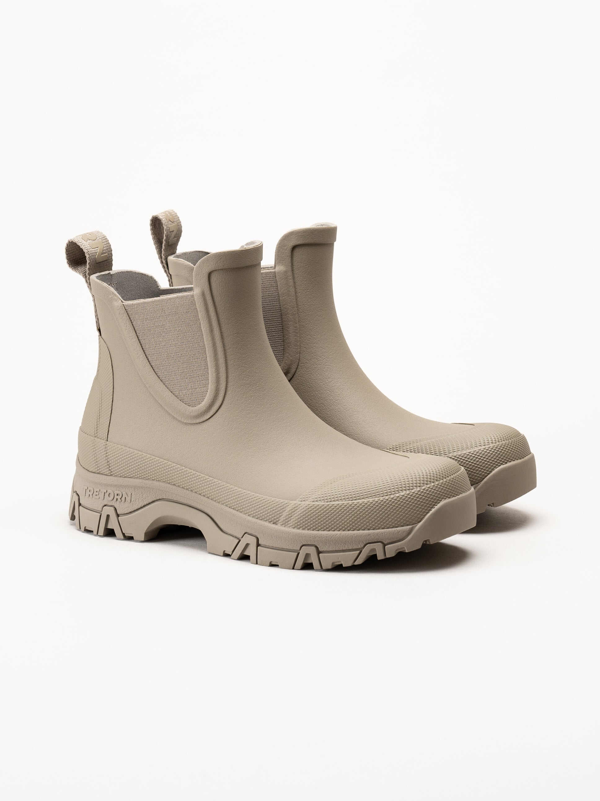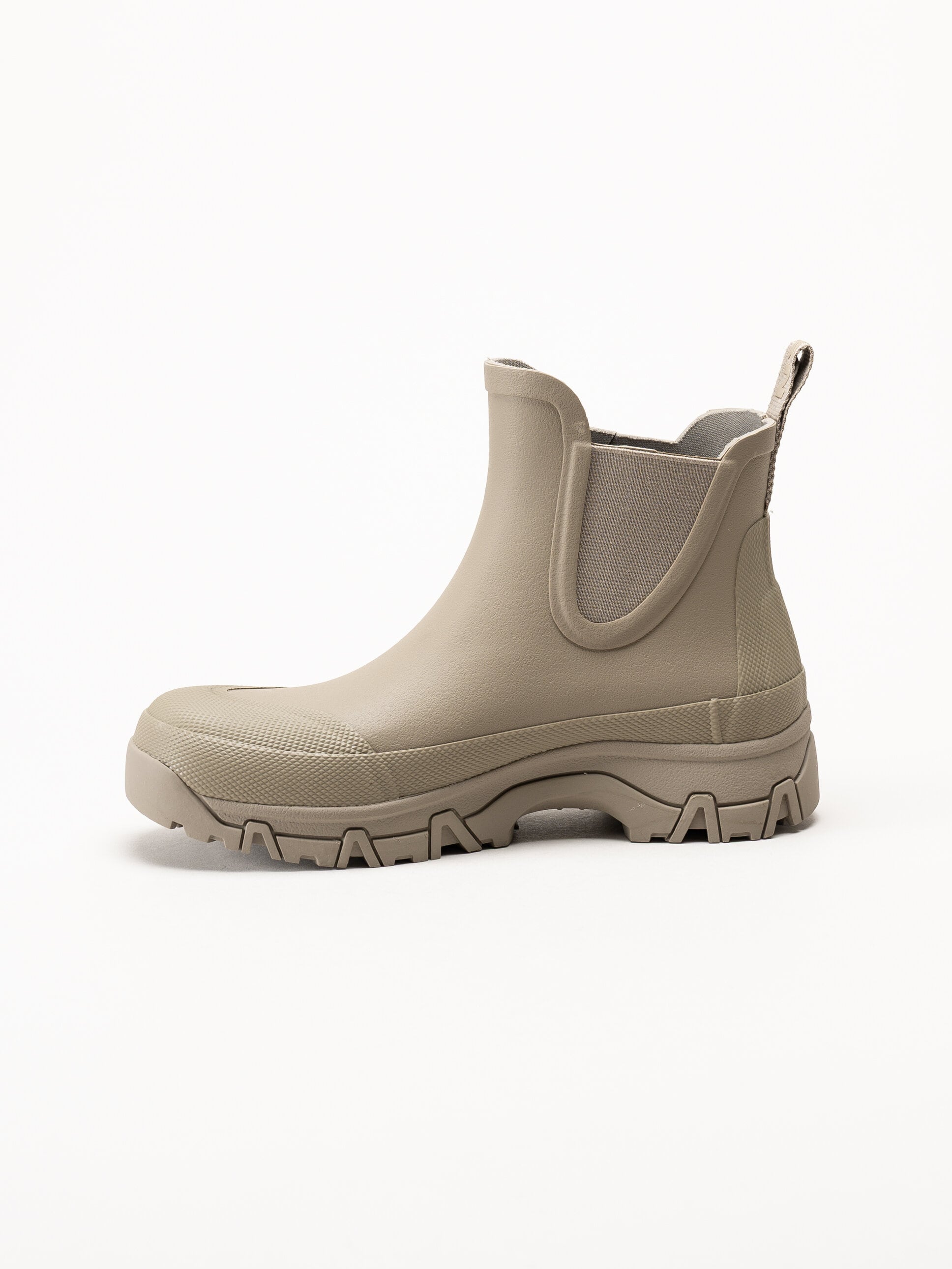 Beige låga gummistövlar från Tretorn i färgen Garpa. Stövlarna är tillverkade i slitstarkt naturgummi som skyddar effektivt mot väta och slitage, samtidigt som den låga modellen ger ett nätt, stilrent och lättburet intryck som passar perfekt för vardagen.