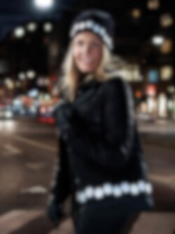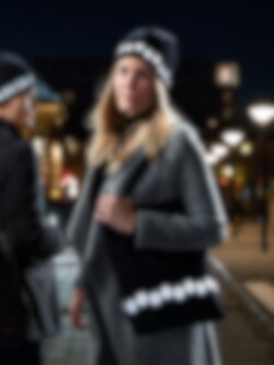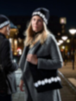 Svart mössa med Hjortron-mönster från Smart in the Dark. Håll dig säker och samtidigt varm i vinternatten om huvudet i mörkret! Du som bär den syns för bilister från ca 125 meters avstånd! Tillverkad i bomull med fleecefoder.