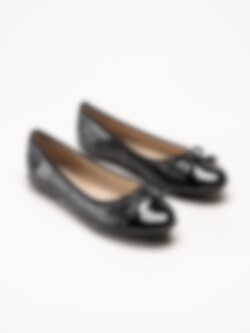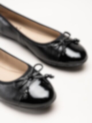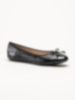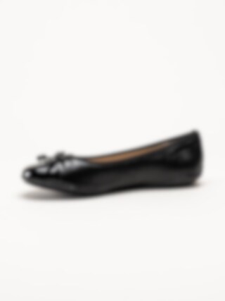 Svarta ballerinaskor i skinn från Caprice. Skorna är tillverkade i mjukt skinn med lackdetaljer som ger ett elegant och sofistikerat intryck, och den dekorativa rosetten framtill tillför en feminin touch. Invändigt är modellen fodrad med skinn och textil, och innersulan i skinn med Memotion-teknologi formar sig efter foten för mjuk dämpning och hög komfort under hela dagen. Yttersulan i gummiblandning ger bra grepp och stabilitet vid gång.