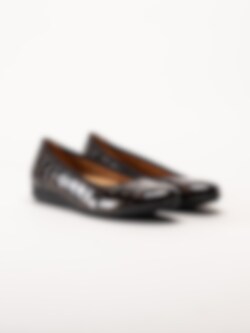 Gabor - Mörkbruna ballerinaskor i kroko-lack