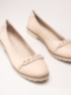 Tamaris - Ljusbeige ballerinaskor i nubuck