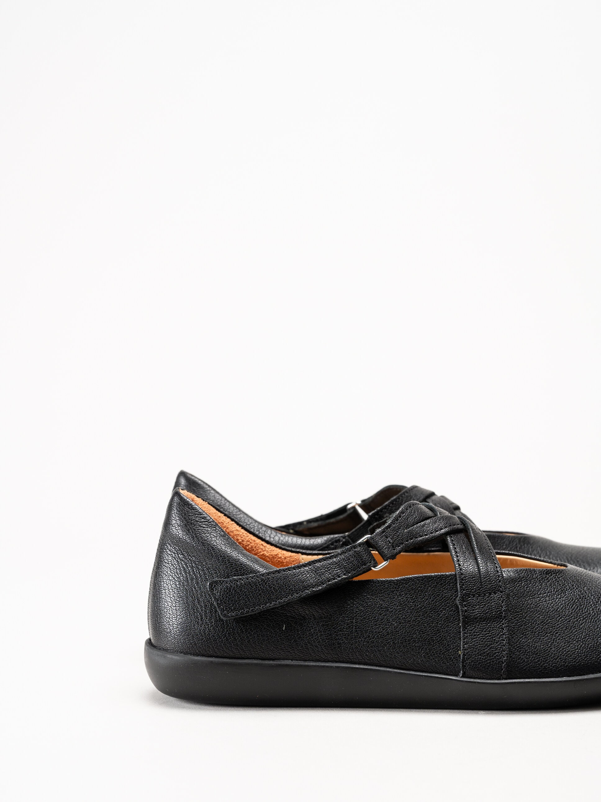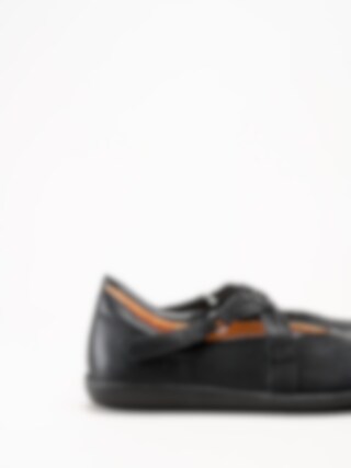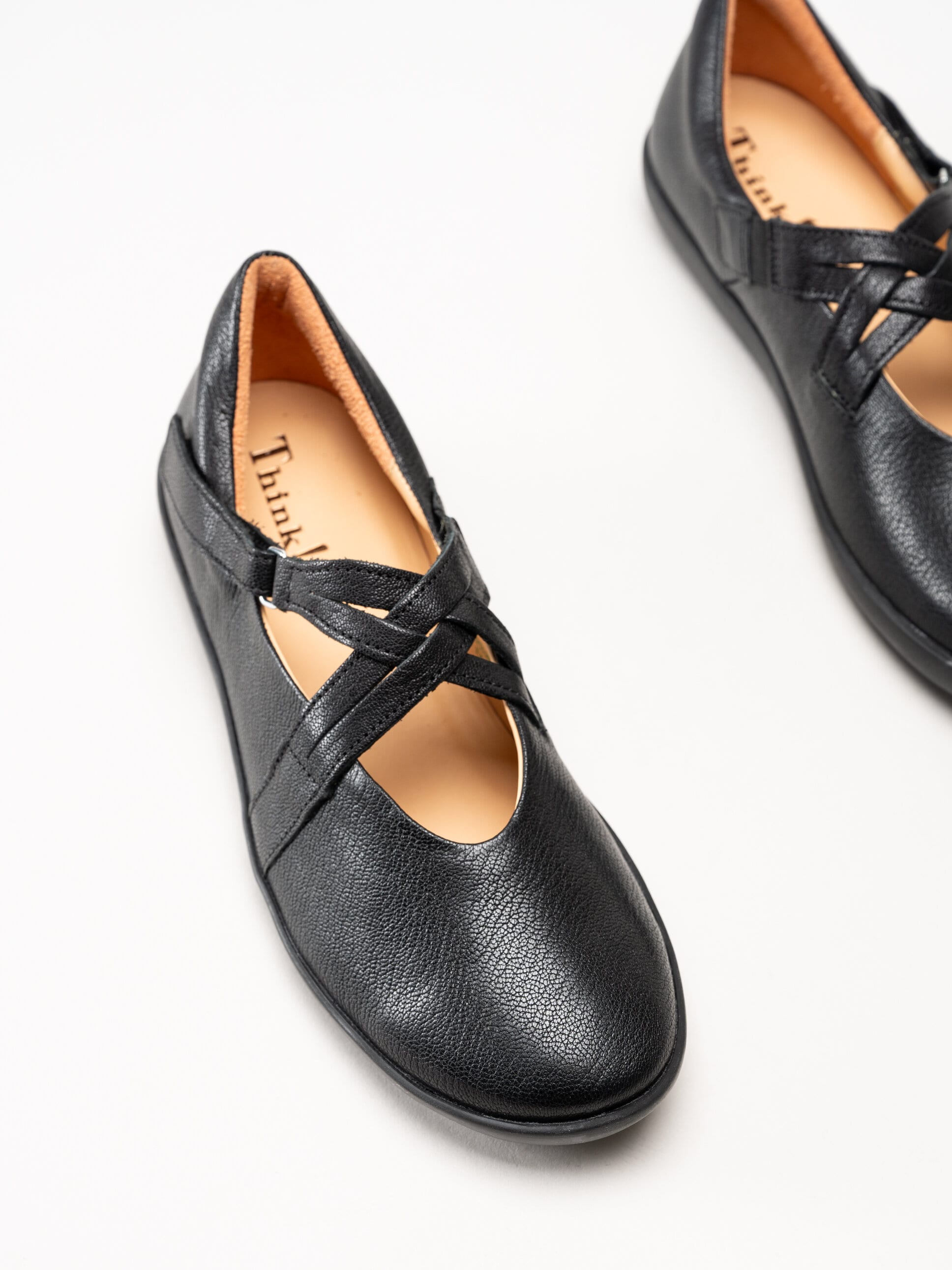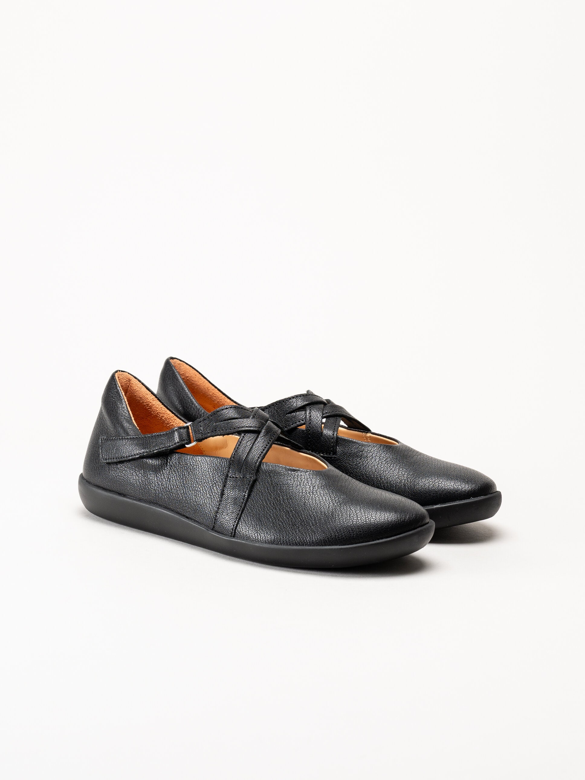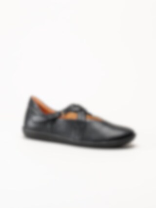Svarta ballerinaskor i skinn Nature Black från Think!. Denna stilrena och bekväma ballerina är tillverkad i mjukt skinn som formar sig efter foten och ger en följsam, behaglig passform. Skorna är helt fodrade med skinn, vilket skapar ett naturligt och ventilerande fotklimat, och den löstagbara innersulan i skinn gör det enkelt att anpassa komforten eller byta sula vid behov.