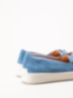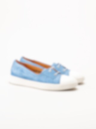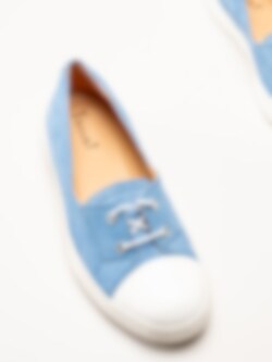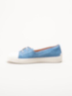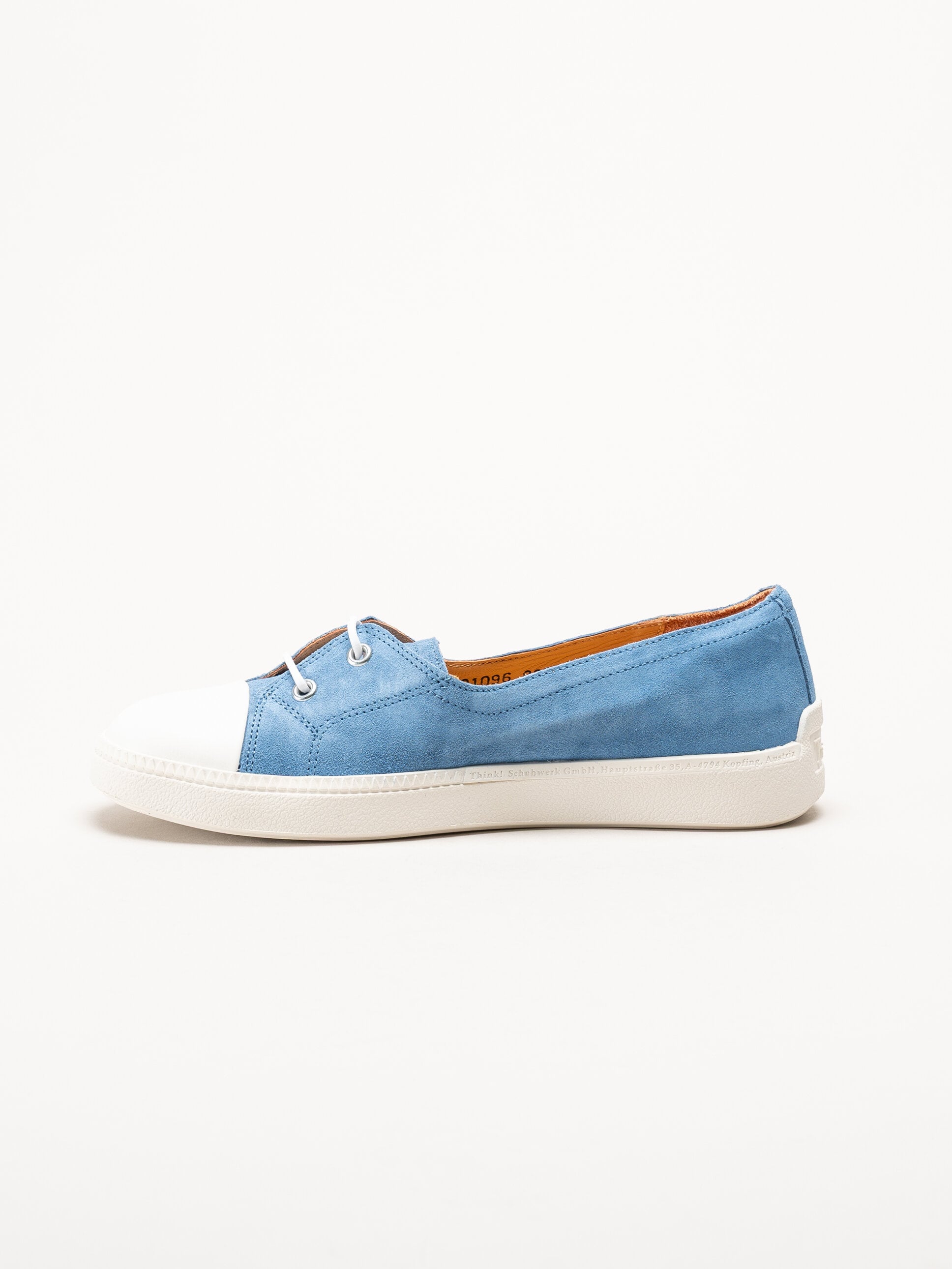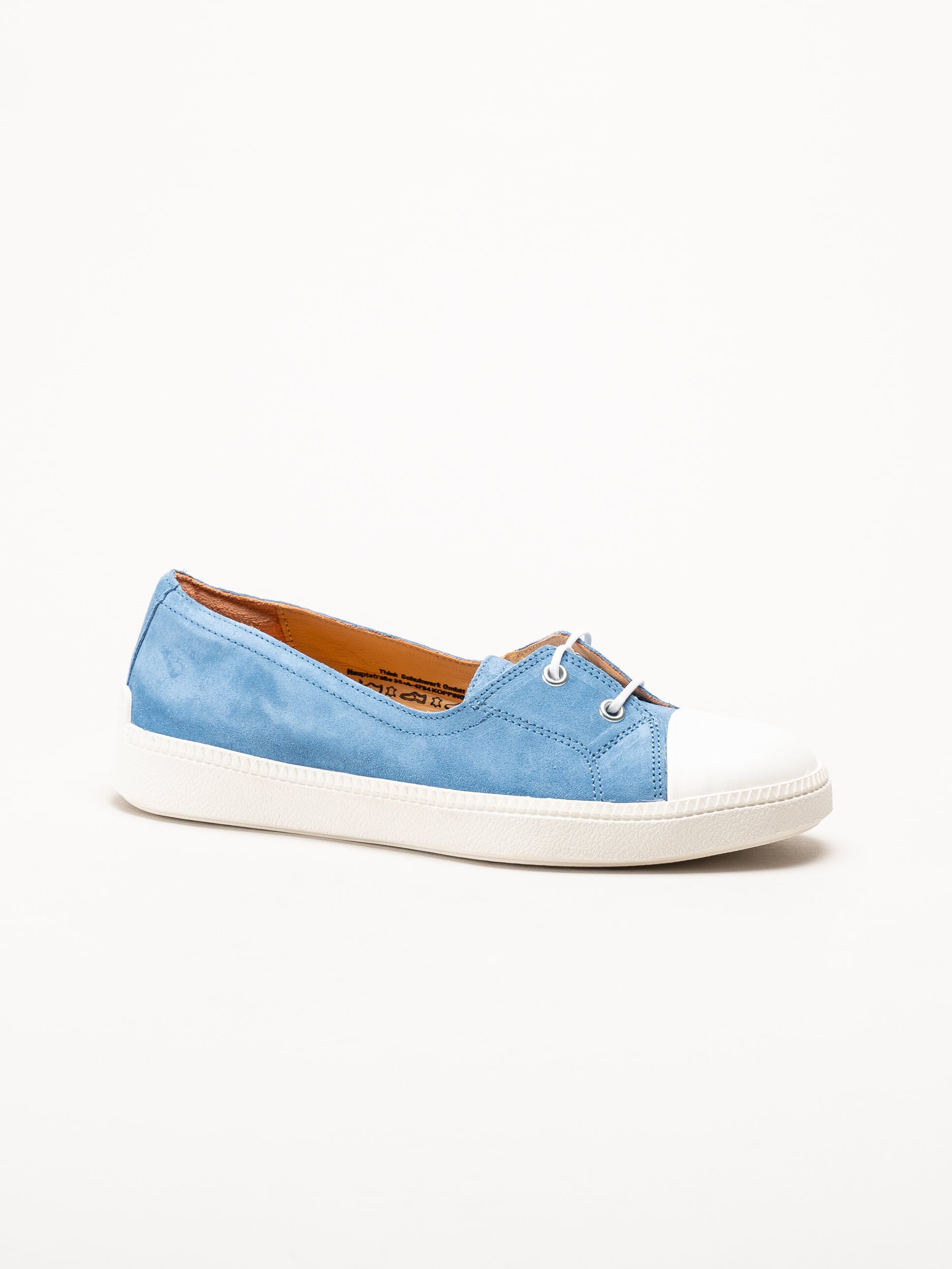Turkosa ballerina i mocka Turna i färgen Azuro/Kombi från Think!. En stilfull och bekväm modell tillverkad i mjuk mocka med skinnfoder som ger en skön känsla mot foten. Den löstagbara innersulan i skinn gör det smidigt att anpassa komforten eller byta sula efter behov. Skorna har en två-håls snörning för lätt justering av passformen.