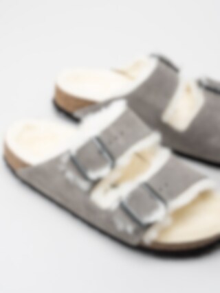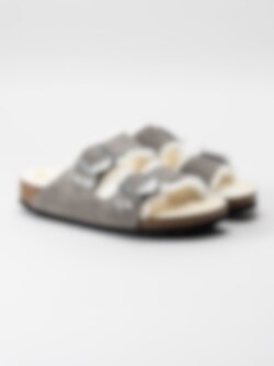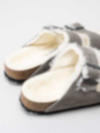 Birkenstock - Arizona Shearling - Gråa fårskinnsfodrade slip in sandaler
