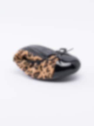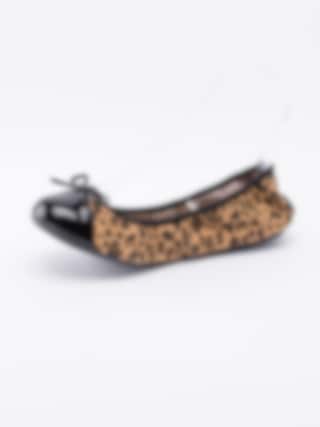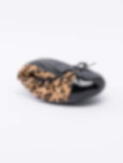 Ballerina Olivia från Butterfly Twist är en leopardmönstrad resårballerina i textil. Lackad tå med rosett som detalj. Svart rand sydd längs öppning. Smyckeslogga i guld på bakparti. Foder och innersula i textil med logga i gult. Svart yttersula i syntet med mönster och logga.