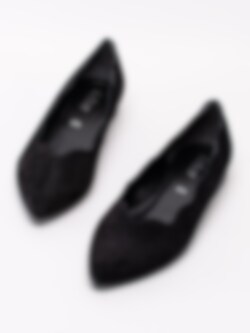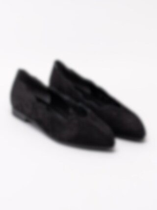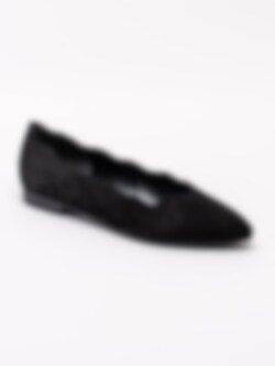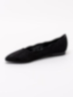 Svarta ballerinaskor från Gabor tillverkade i mocka. Nätta ballerina med spetsig tå och vågigt skuren vid öppning som detalj. Skinnfodrade med innersula i skinn som känns skönt mot foten, samt tillåter skorna att forma sig efter dina fötter. Använd dessa på jobbet likaväl som på festen - oavsett känner du sig både bekväm och snygg.