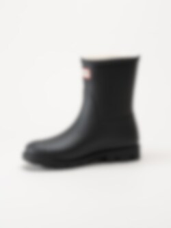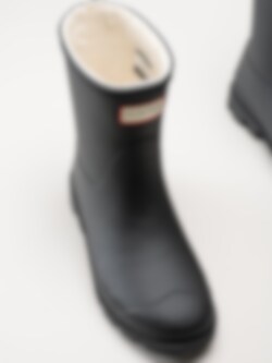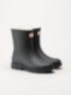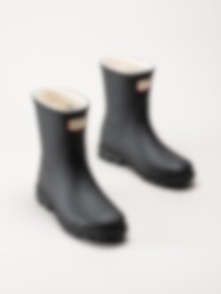Svarta låga fodrade gummistövlar Unisex Downpour Short Insulate Black från Hunter. Fodrade stövlar i unisexmodell tillverkade av slitstarkt gummi som håller fötterna torra under våta och kalla dagar. Det mjuka teddy pile-fodret och den löstagbara innersulan i teddy pile ger värme och komfort hela dagen. Den greppvänliga yttersulan i gummi säkerställer stabilitet på både blöta och hala underlag.