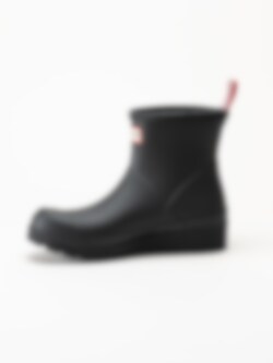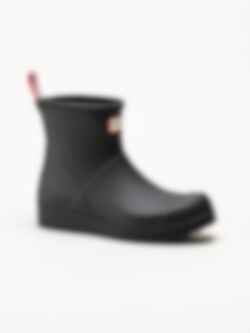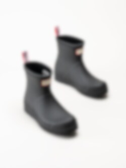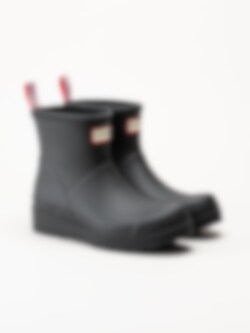 Svarta låga gummistövlar Women´s Play Short Black från Hunter. Klassiska och praktiska gummistövlar i en kortare modell, tillverkade i slitstarkt naturgummi som skyddar mot regn och fukt. Den textilfodrade insidan och den löstagbara innersulan i textil ger skön komfort, medan den stabila gummisulan erbjuder bra grepp på våta underlag.