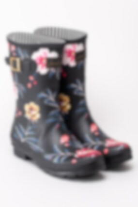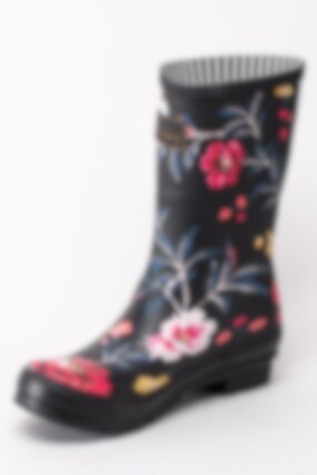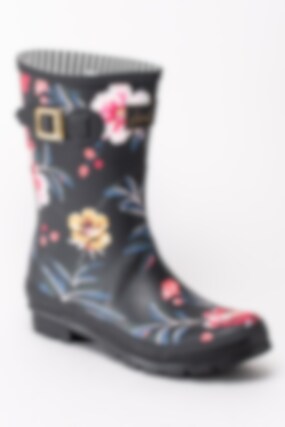 Joules Ltd - Molly Welly - Svarta gummistövlar med blommor