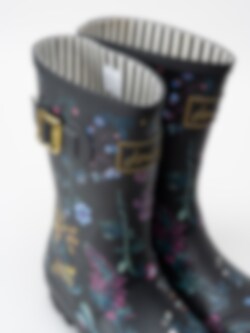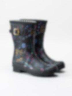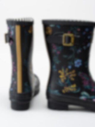 Joules Ltd - Molly Welly - Svarta gummistövlar med blommotiv