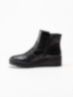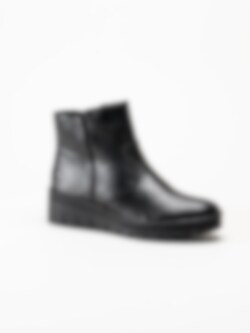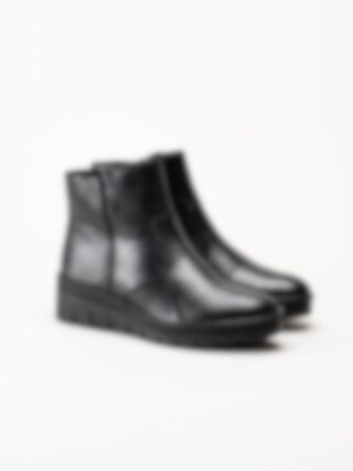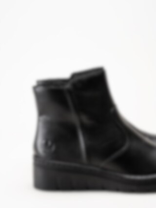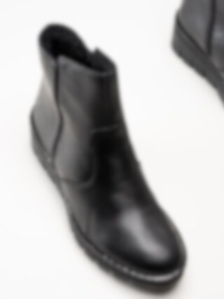 Svarta fodrade kilklackade boots från Rieker i färgen Black. En stilren och bekväm boots i mjukt skinn med rund tå och kilklack som ger både höjd och stabilitet. Fodret i teddy pile tillsammans med innersulan i filt ger värme och komfort under kalla dagar. Dragkedjan på insidan gör bootsen enkla att ta på och av, medan den svarta yttersulan i gummi med mönster och Rieker-logga ger bra grepp på varierande underlag.