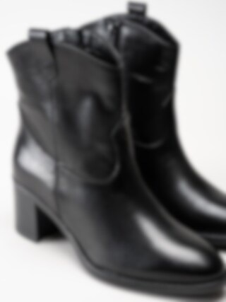 Tamaris - Svarta westerninspirerad boots i skinn