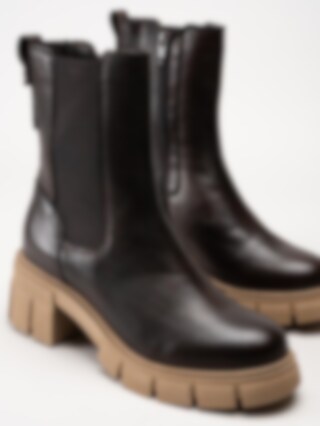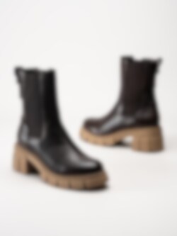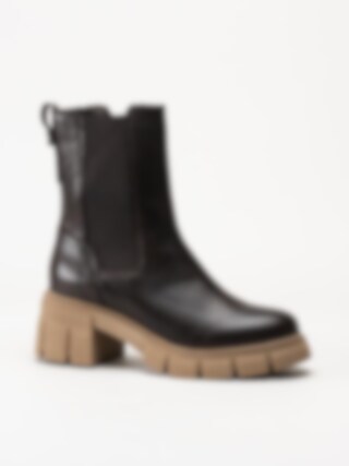 Dasia - Avila - Mörkbruna chunky chelsea boots i skinn